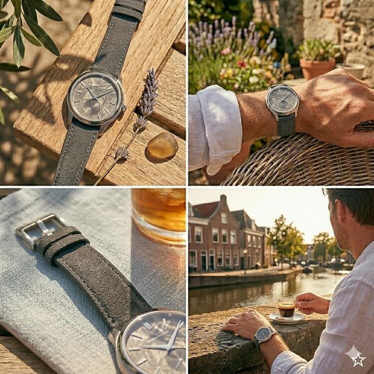 Grijs suede is ook mooi, maar dat kun je eigenlijk overal kopen. Die mesh heeft toch net dat tikje eigenzinnigheid. Dat ga je minder snel terugvinden in andere horloges.