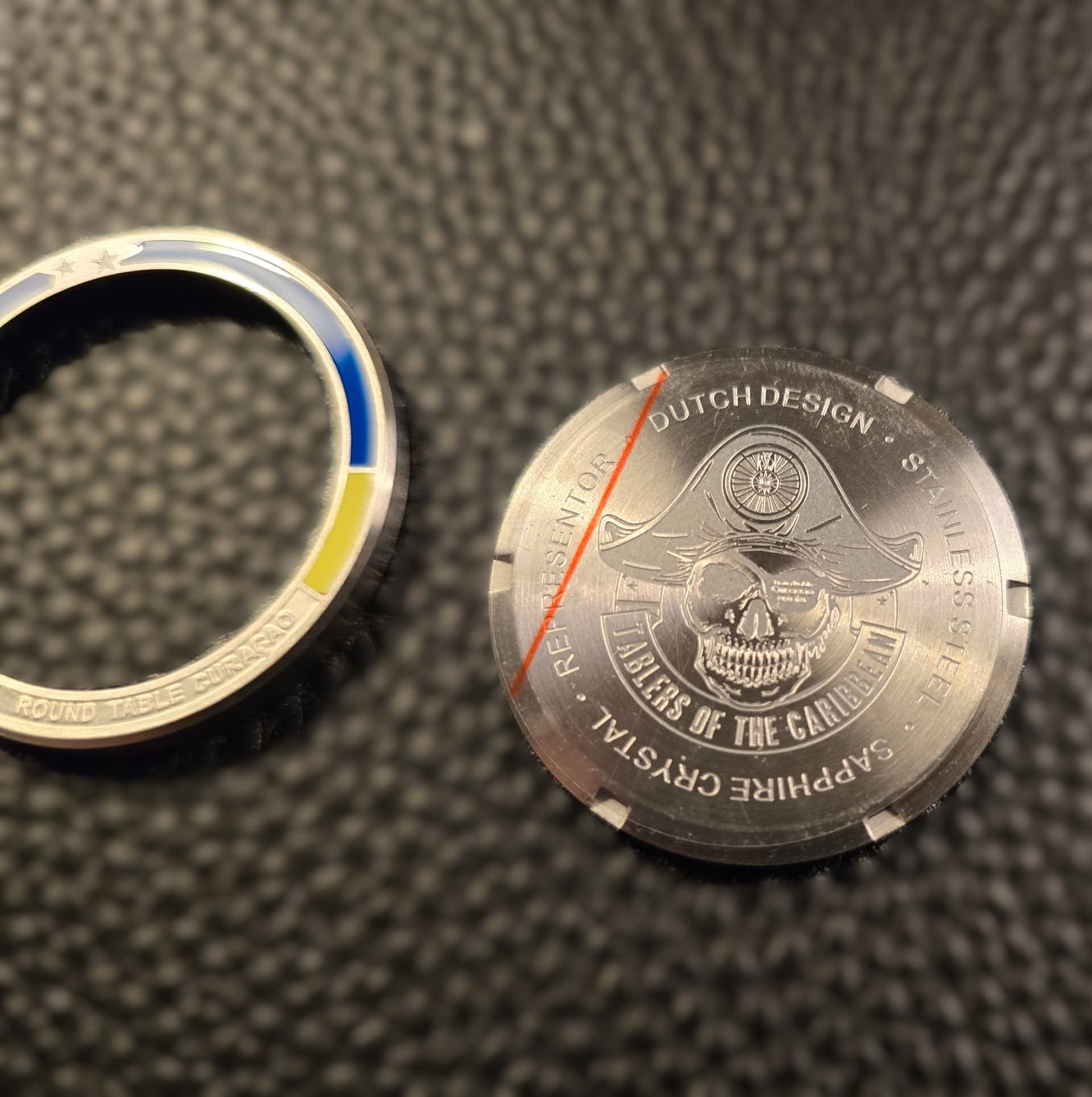 Ik had gewoon teveel zin om deze laatste fase te beginnen! Ik zag links en rechts al allerlei ideeën voorbij komen om HFLE 2026 leuk terug te laten komen op het horloge. Hierbij de verrassing, we gaan dit horloge helemaal HF proof maken samen met meester creativeling @Jurk. Sommigen van jullie hadden al geraden dat de verrassing zat in de caseback van dit horloge en dat klopt. Deze wordt dicht waarbij wij allemaal de input gaan geven en @Jurk met iets unieks gaat komen. Dit gaan we graveren/etsen! Mochten jullie je afvragen hoever dat kan qua details, kijk hier een caseback die ik voor de Caribische RT heb mogen maken: