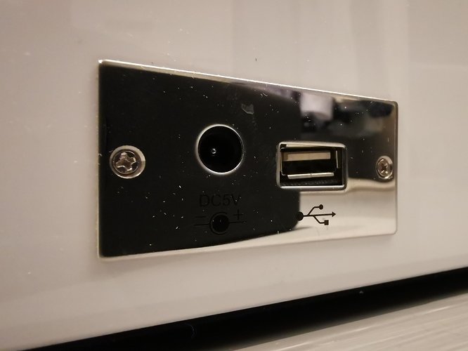 De kluis heeft een apart ‘kanaaltje’ voor draden, wordt gebruikt voor alarm installaties e.d ik heb er de 5V kabel door getrokken