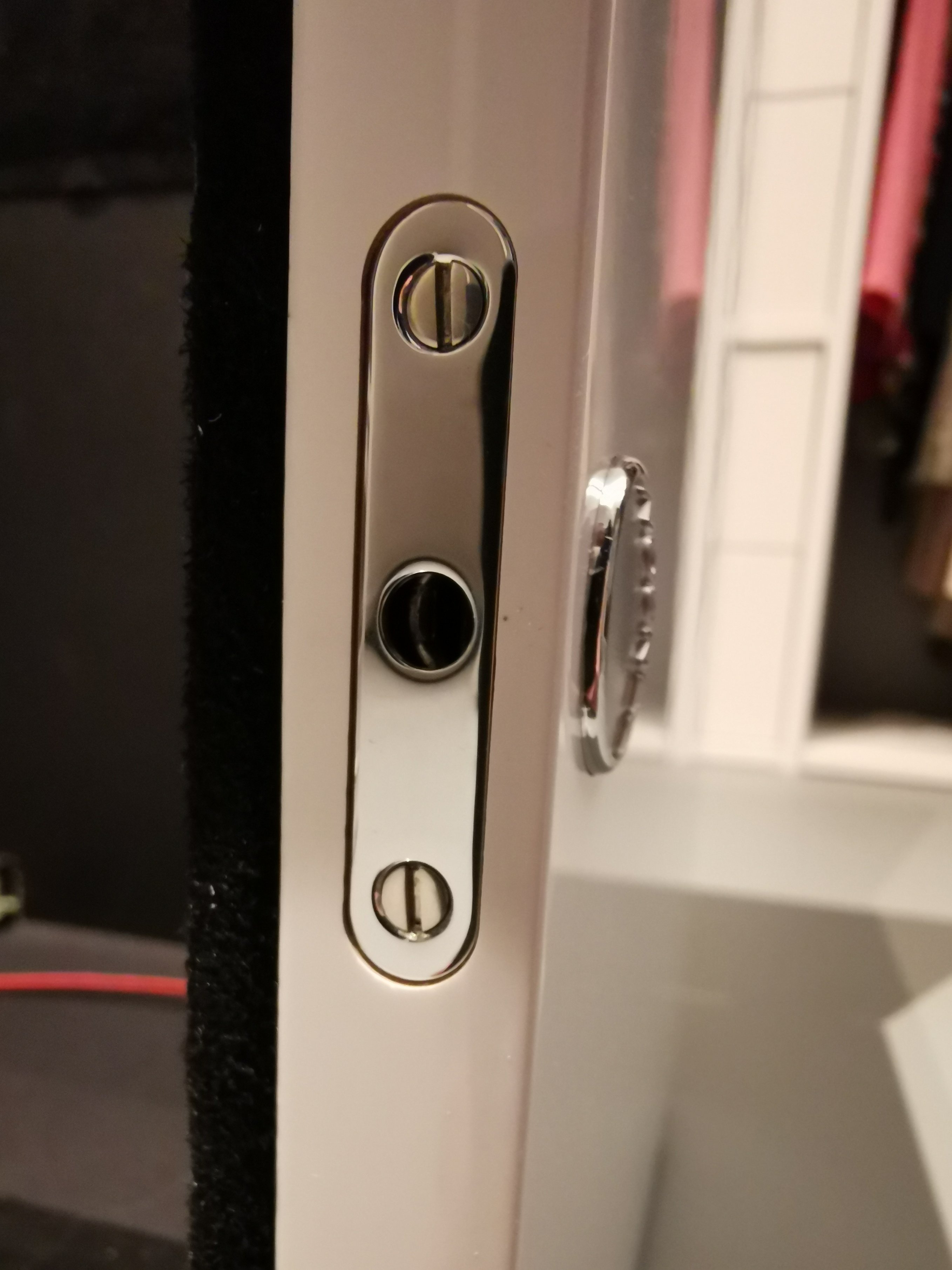 Binnenzijde is erg netjes afgewerkt, je ziet geen snijlijnen van het vilt of iets dergelijks, scharnieren zijn stevig, deurtje aan de voorkant voelt m.i fragiel aan, het slotje werkt wel maar had meer feedback mogen geven.