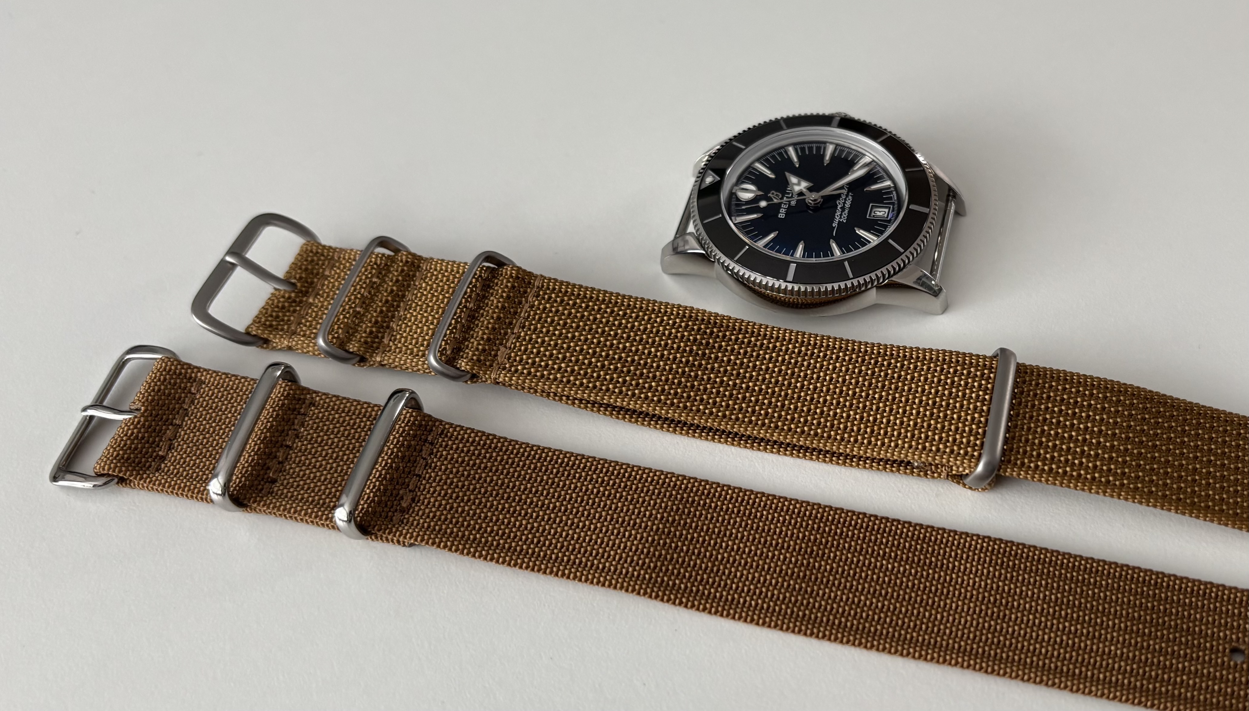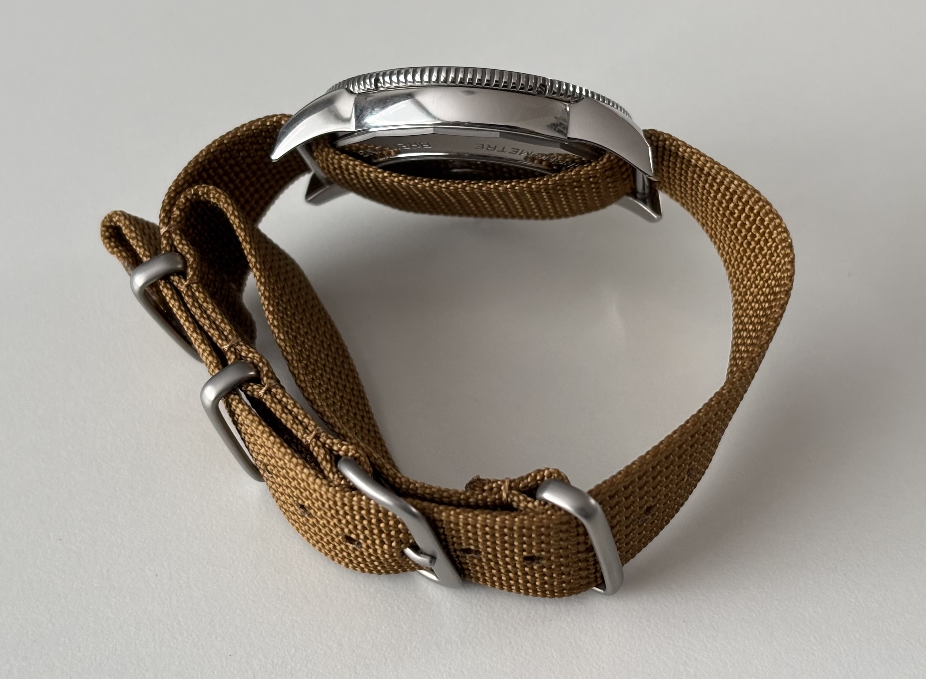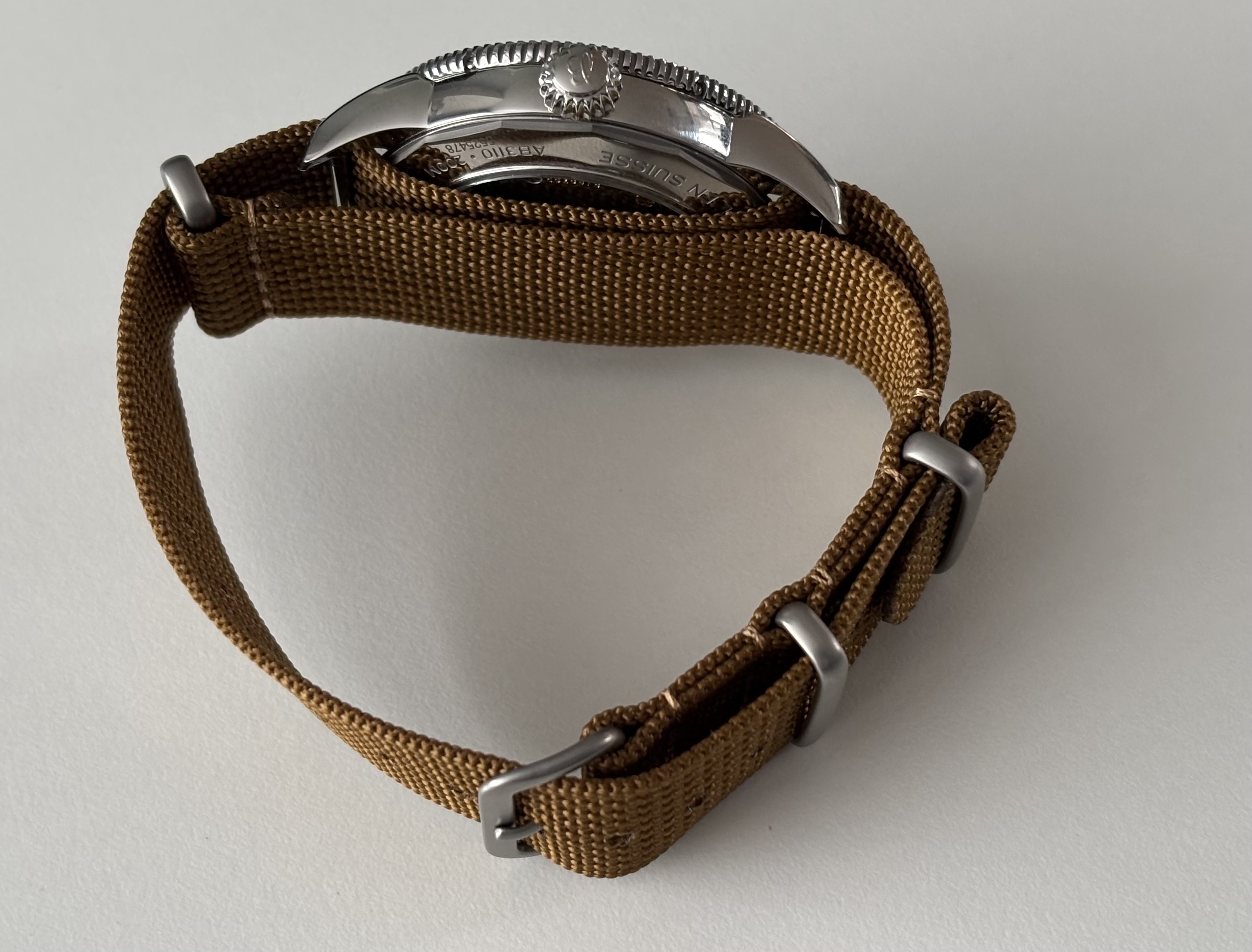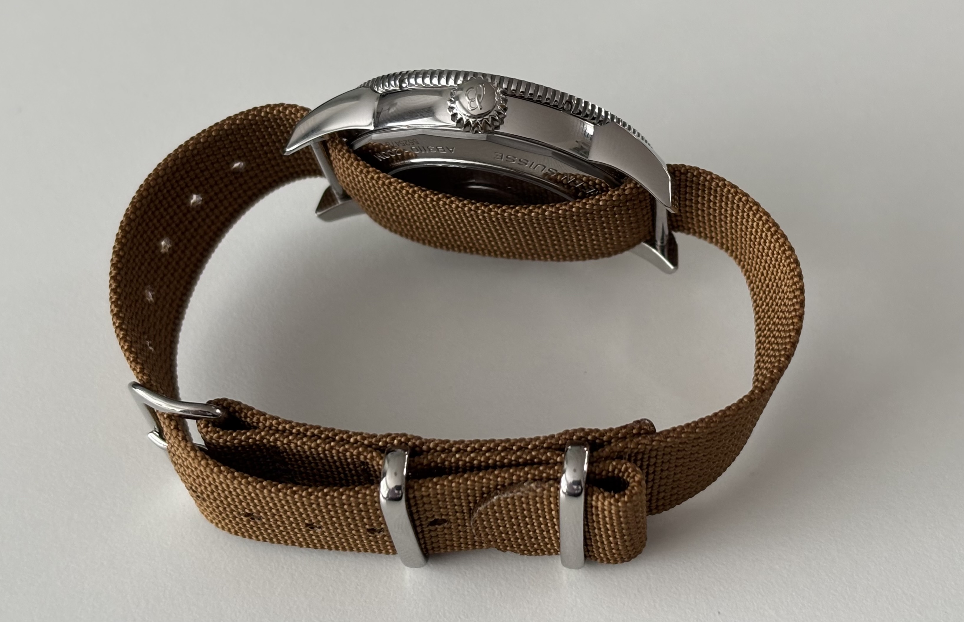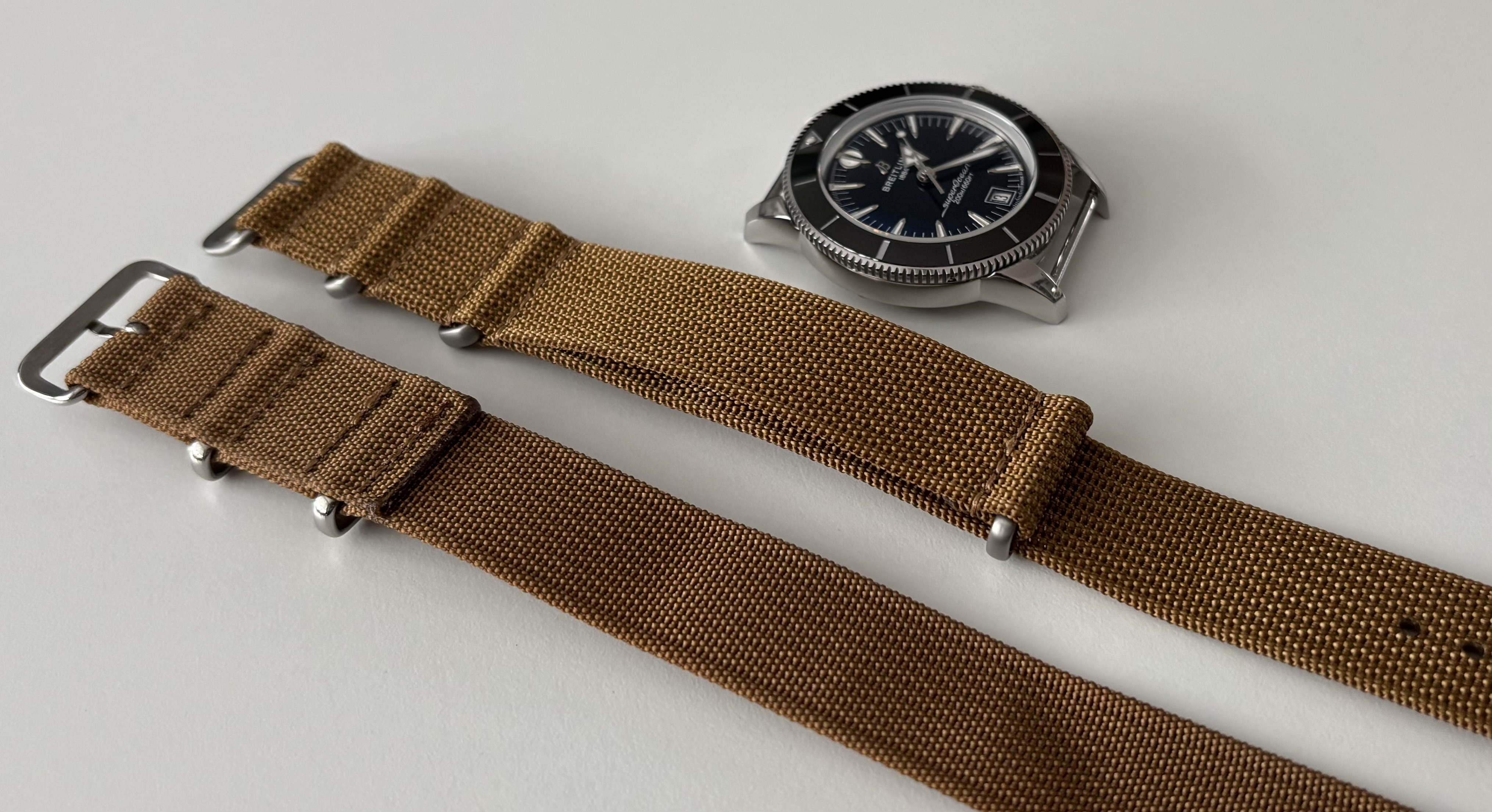 Ik zie dat deze methode veel gebruikt wordt, snap dat niet goed… eerst lees je dat horloges dun moeten zijn en vervolgens gaat er een dubbele nato onderdoor .