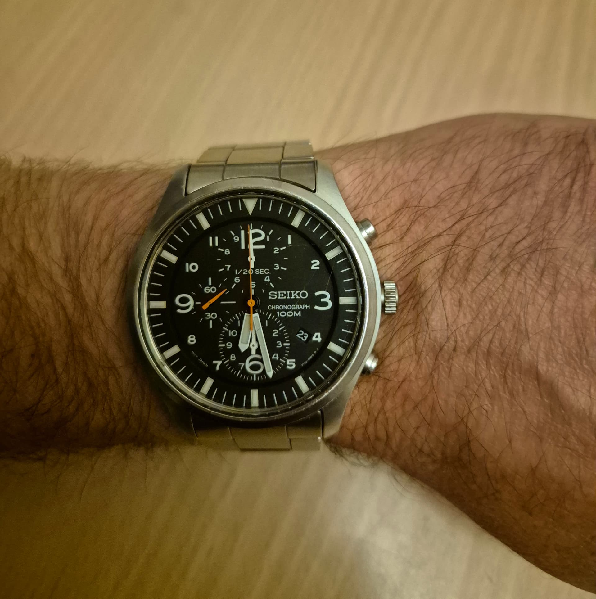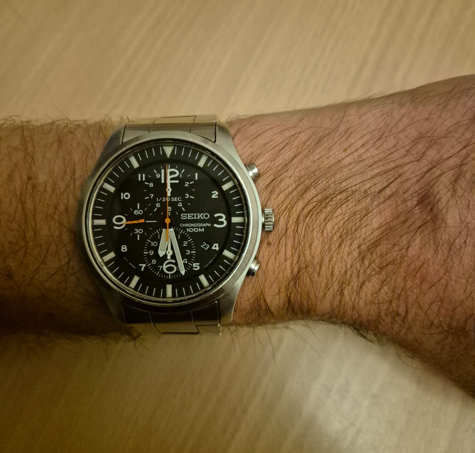 Dus tegen mijn hand en iets verder terug. Op staal in ieder geval. Leer en nato schuift iets minder.