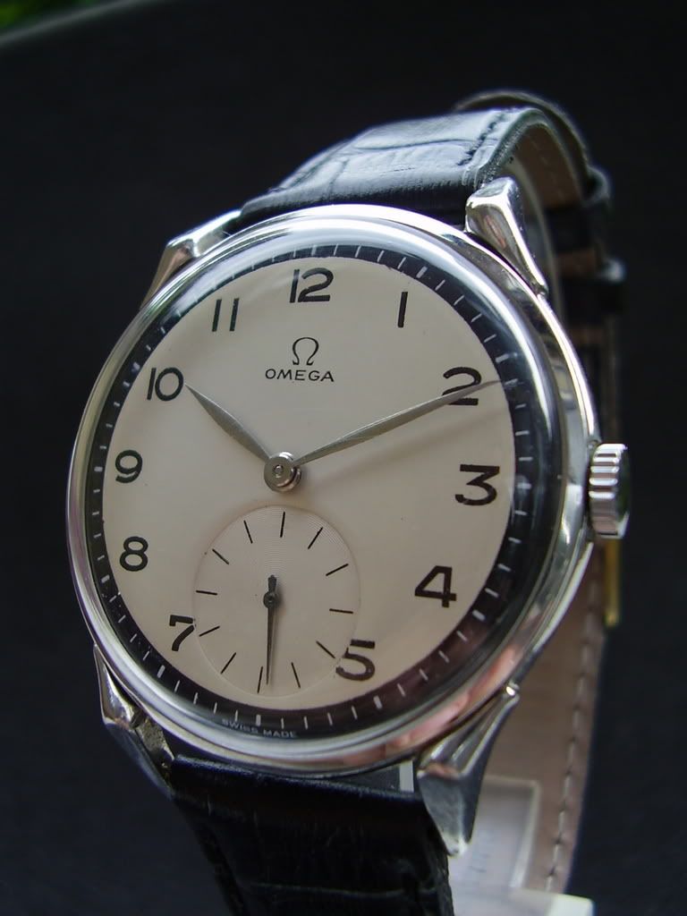 Inmiddels heb ik een Omega uit 1944 op het oog. Het heeft bij benadering de juiste wijzers maar is beetje klein. Dat is geen bezwaar want ik ben niet zo modegevoelig.