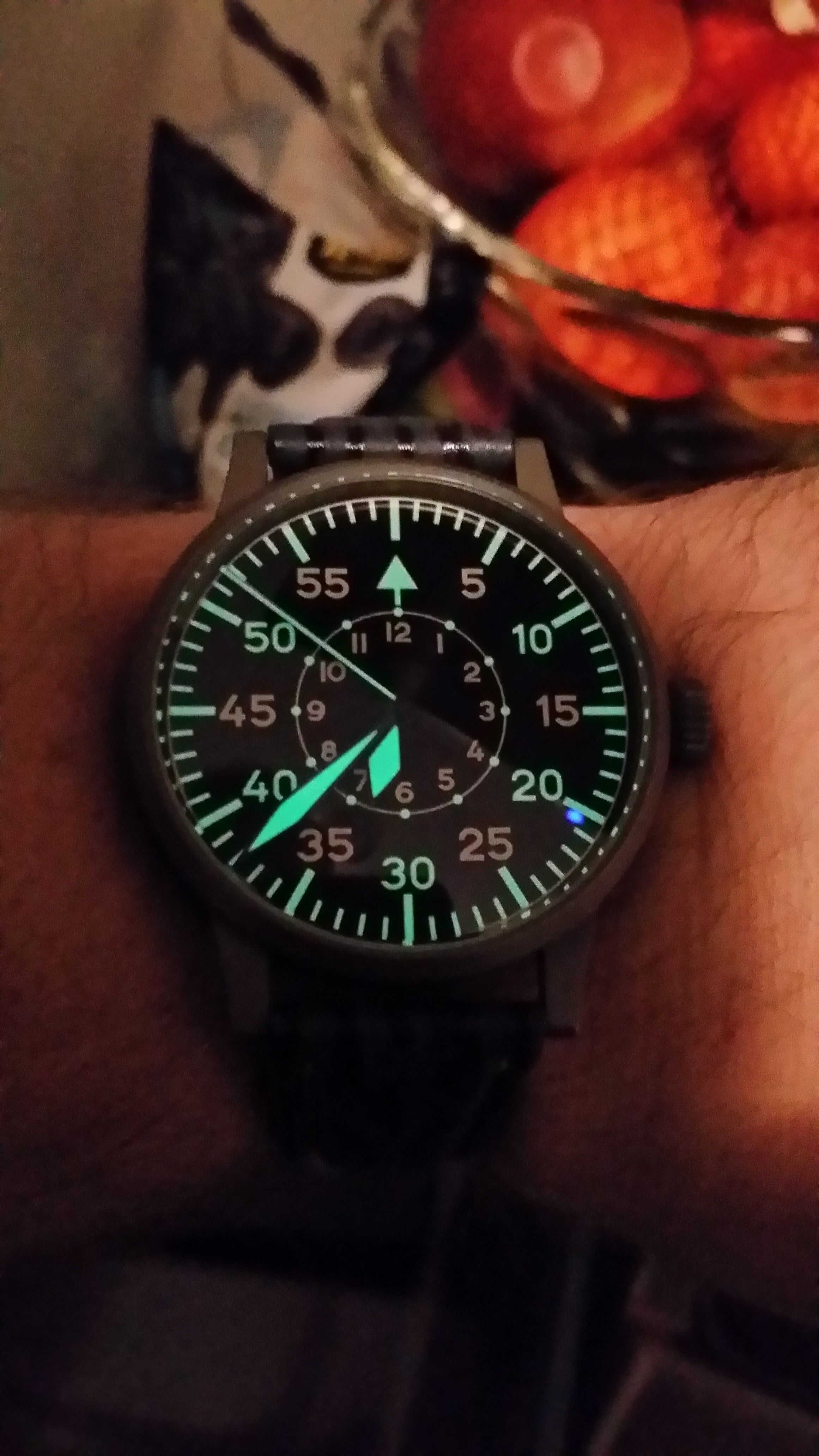Tja⦠de P1lot One⦠we hebben gekozen voor Superluminova⦠en dat is een goede zet gebleken⦠op de dagen dat ik mijn P1lot One de hele dag draag, en zeker als ik buiten ben geweest⦠dan kan ik 'smorgens om 6 uur nog zien hoe laat het is⦠die Lume is ECHT goed⦠vandaar ook dat we voor de SUBDELTA Periscope ook weer gekozen hebben voor deze Lume⦠'k ga zelf ook maar eens een portie bestellen bij ze denk ikā¦hoewel die Bergeon Lume ook niet slecht is⦠die moet ik nog eens uitgebreid testen⦠in elk geval gloeien de P1lot One, en de Vostok, waarvan ik de wijzers opnieuw gelumed heb met Bergeon Lume me tegemoet uit de kist als ik 'savonds het licht uitknipā¦