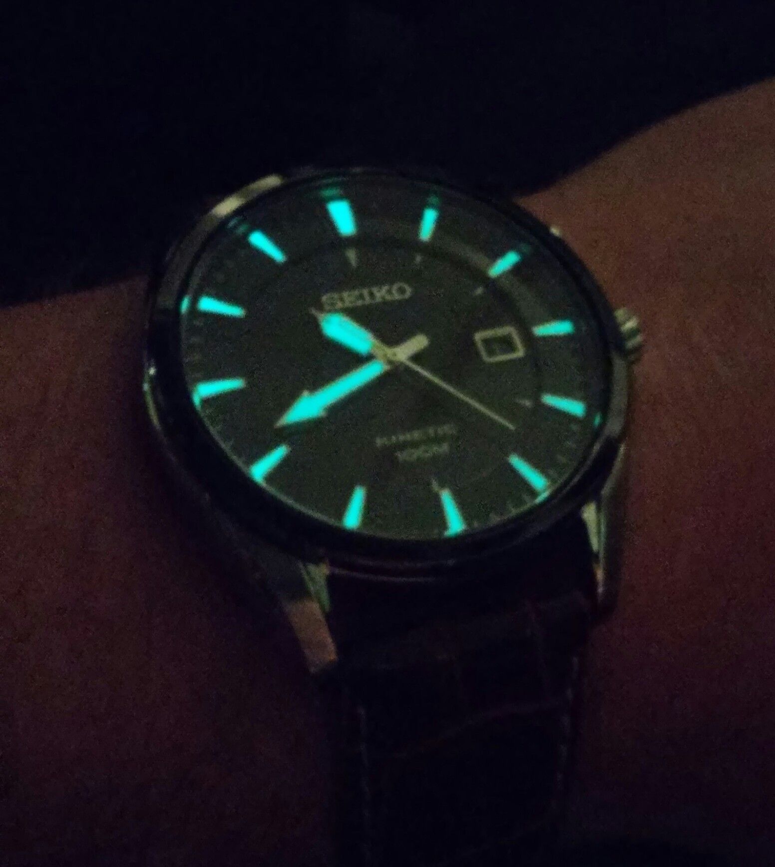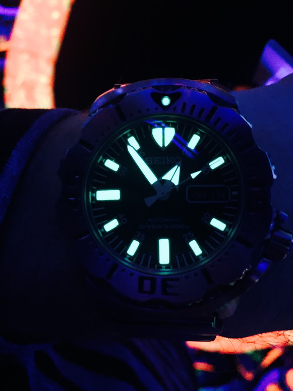 Nee maar serieus, mān dweller met luminous is idd geen zaklamp. Niet te vergelijken met bv een seiko monster. En dan helpt het ook niet dat die minutenwijzer zo dun Is. En dan voor de wijzer die voor een duiker wel het belangrijkst Is.