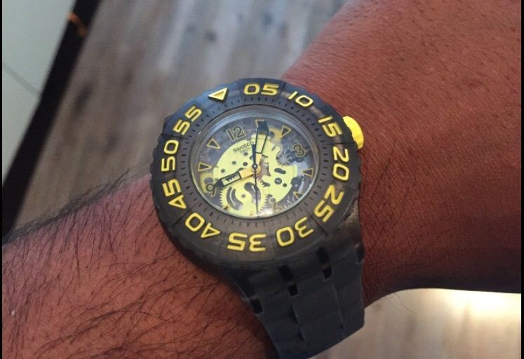 Haha heb je ook wel eens gedoken met deze swatch? Drijft het horloge, Vanwege de lichte plastic kast?