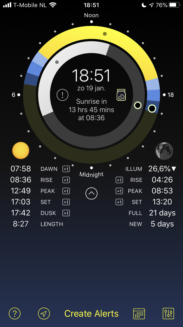 Maar kijk eens naar de Daff Moon app. Er staat echt veel info in. Ook over zonsopkomst en zonsondergang. En ook over de overige planeten in ons zonnestelsel.