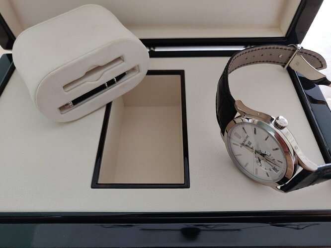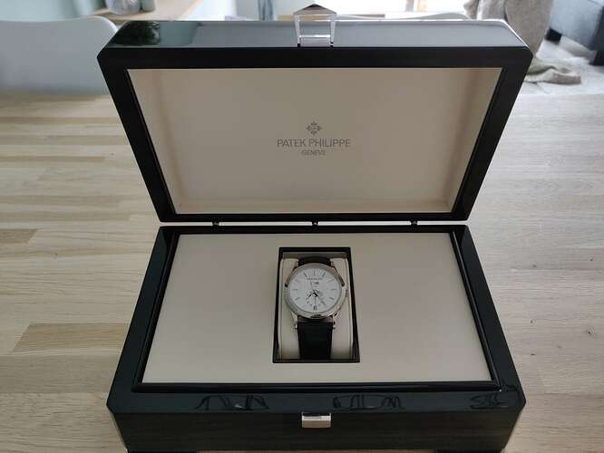 Wat betreft horloges had ik voor het huwelijk een mooie Patek Philippe 5396G-011 gevonden via Chrono24. Een grote uitgave natuurlijk, maar het idee erachter was om bij de hele bijzondere gebeurtenissen in het leven (zoals huwelijk en geboorte kind), deze te gaan linken aan een heel bijzonder horloge (die hopelijk ook nog lang in de familie blijft). Vooral wat betreft het laatste was mijn keuze gevallen op deze Patek. Een rustig ingetogen horloge, die met de moon-phase en de manier van afwerking wel echt iets speciaal is.