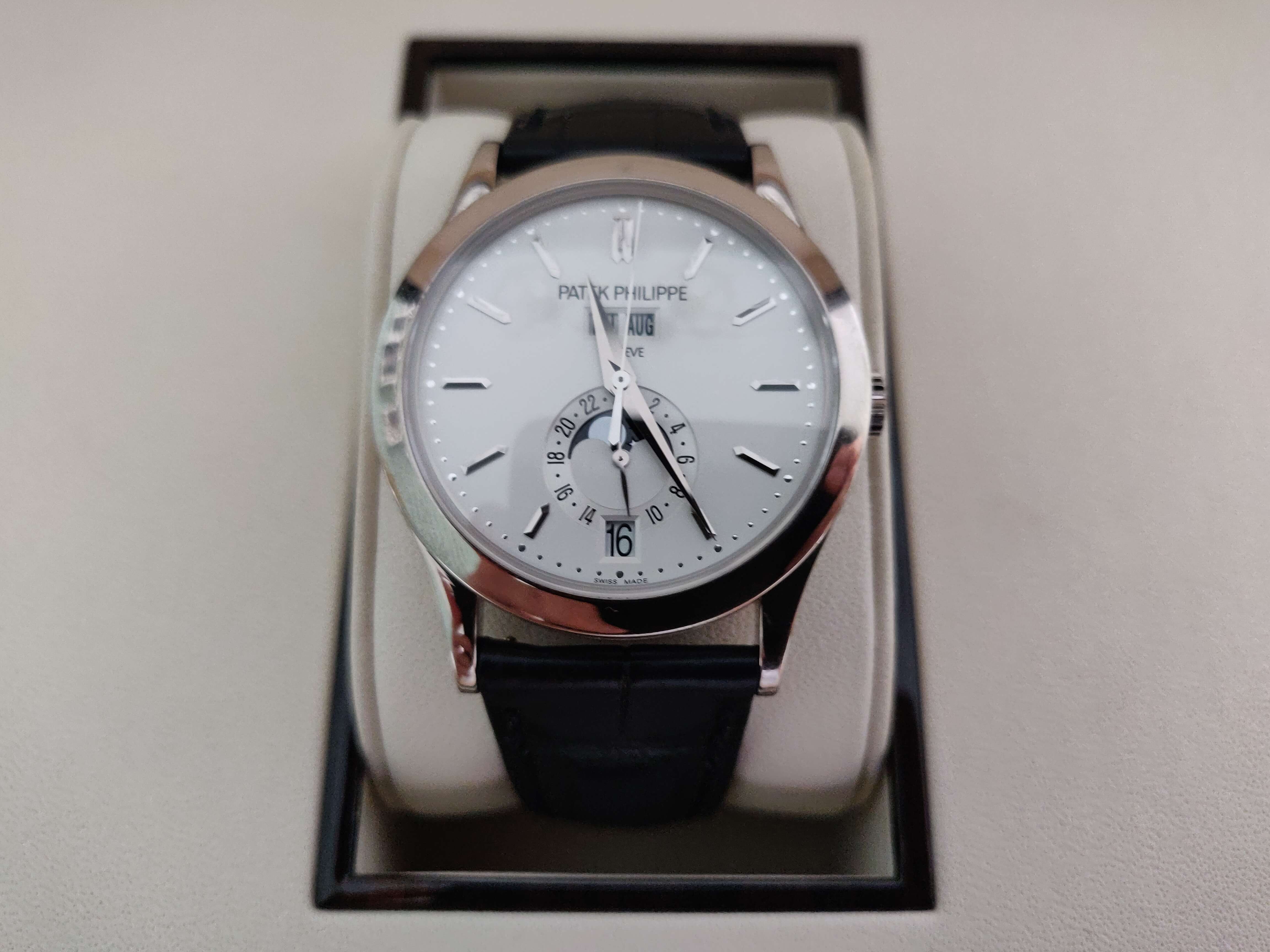 Er is alleen een maar. Toen ik het horloge thuis kreeg, ben ik deze natuurlijk gaan controleren en mij viel toen iets op. Op het officiële certificaat stond geen ‘5396G-011’, maar ‘5396G-001’ (die overigens op hetzelfde kaliber is gebaseerd, alleen een andere lay-out van de wijzerplaat heeft). Ook ontdekte ik dat het horloge een Geneva keurmerk had i.p.v. het Patek Philippe keurmerk (wat strookt met de uitgiftedatum van de 5396G-001). Ik ben vervolgens met het horloge langs de Patek boutique gegaan. Wat betreft de echtheid van het horloge hadden ze geen twijfel. Een dial-change gebeurt en hoeft niet erg te zijn, zolang deze ook maar bij Patek gedaan en geregistreerd is. Ze hebben dus voor mij nagevraagd of de dial-change in de boeken terug was te vinden, maar helaas was dit niet het geval. Ik heb daarom toen besloten het horloge terug te sturen (waar de verkopende partij overigens niet moeilijk over deed). Voor de liefhebber nog een aantal foto’s van het horloge (inmiddels dus niet meer in bezit):