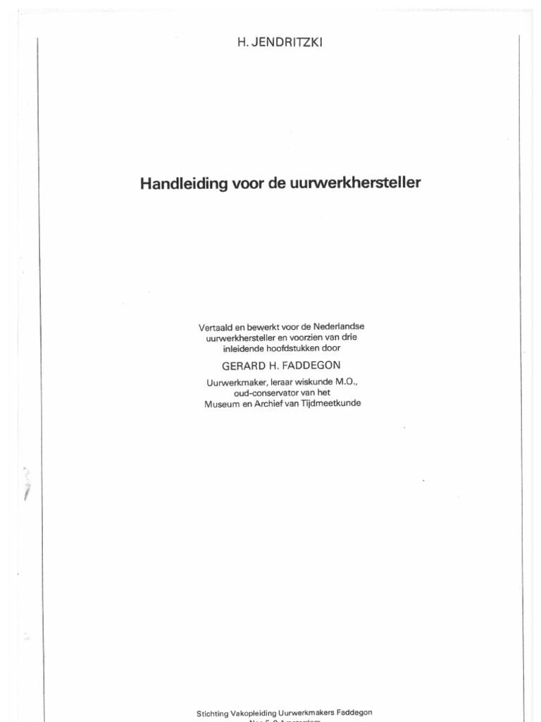 met betrekking tot de nodige lectuur kan ik je het boek “Moderne uurwerkreparatie” van de schrijver H. Jendritzki aanbevelen.