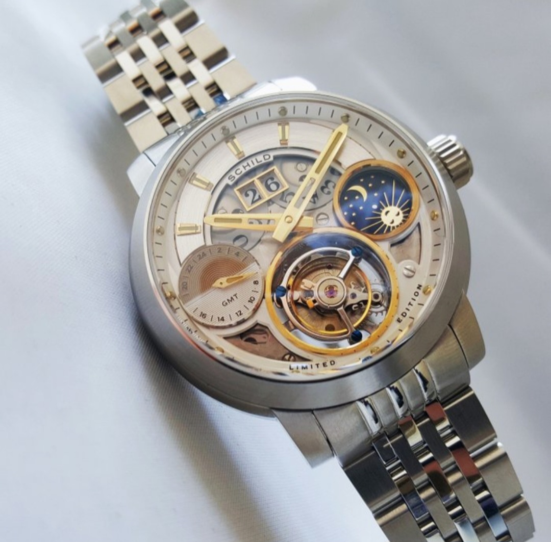 Geen idee mbt de kwaliteit van die merk, maar vind hem zelf mooi, dus besteld, Schild Heinrich GMT Tourbillon Limited Edition Gold.