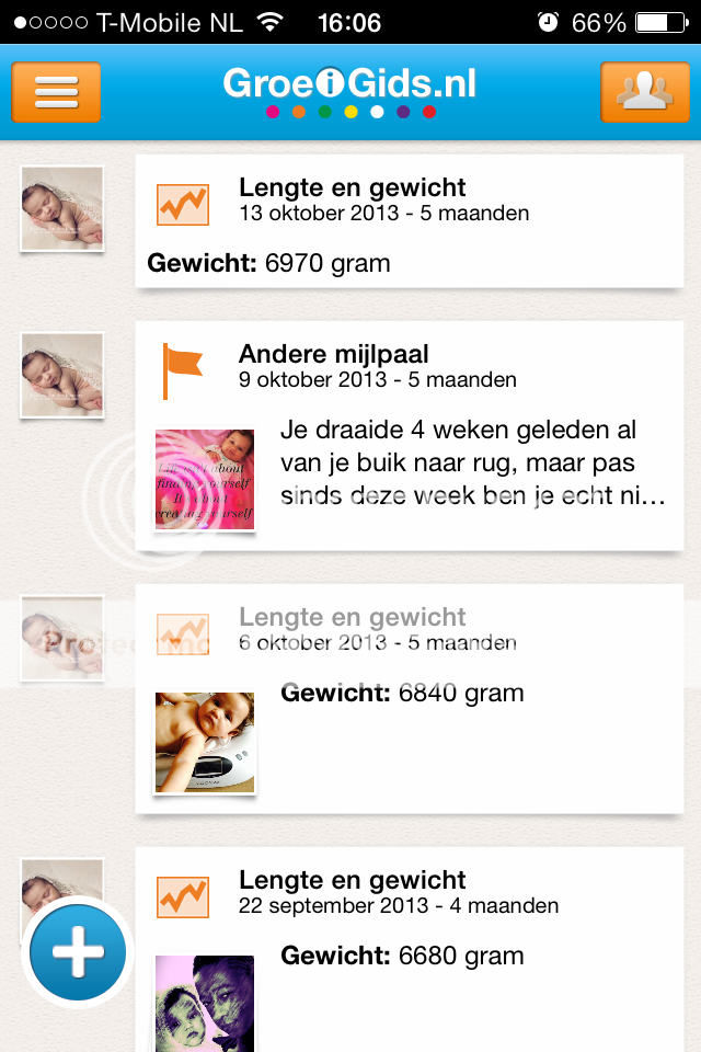 Ik heb ook nog een tip voor je als vader anno 2013 Download de GroeiApp van Groeigids.nl Daar kun je alles in bijhouden (tandjes, ziektes, lengte-gewicht, mijlpalen, gebeurtenissen, foto’s) i.p.v. in al die boeken waarbij je plaatjes en foto’s in moet plakken en het allemaal achteraf niet meer precies weet. Zeker als je allebei een drukke baan hebt of niet zo van schrijven, knippen en plakken bent. Met 'n groeiapp kun je in 1 x een pdf maken en je hebt verslagen tot hun 18e. Ik maak bijvoorbeeld om de 3 maanden een PDF, zodat ik zeker weet dat het ook bewaard blijft. Het ziet er heel strak uit. Uiteraard ook foto’s van je klokkies erbij doen