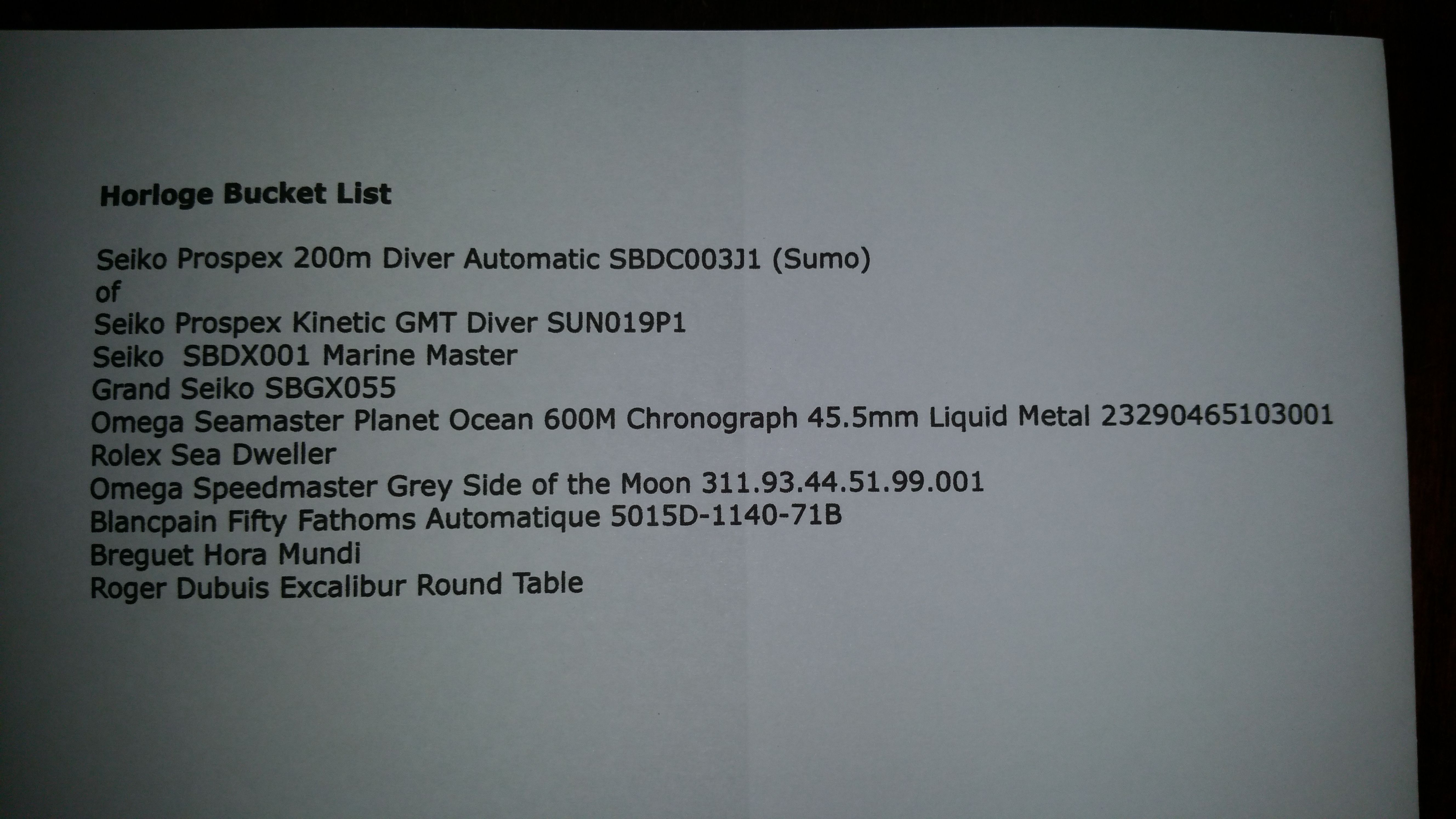 Tot een half jaar geleden stond er nog een Tag Heuer Monaco op, deze heb ik gelukkig kunnen doorstrepen. Of de laatste 2 er ooit komen weet ik niet. Vind ik ook niet heel belangrijk.