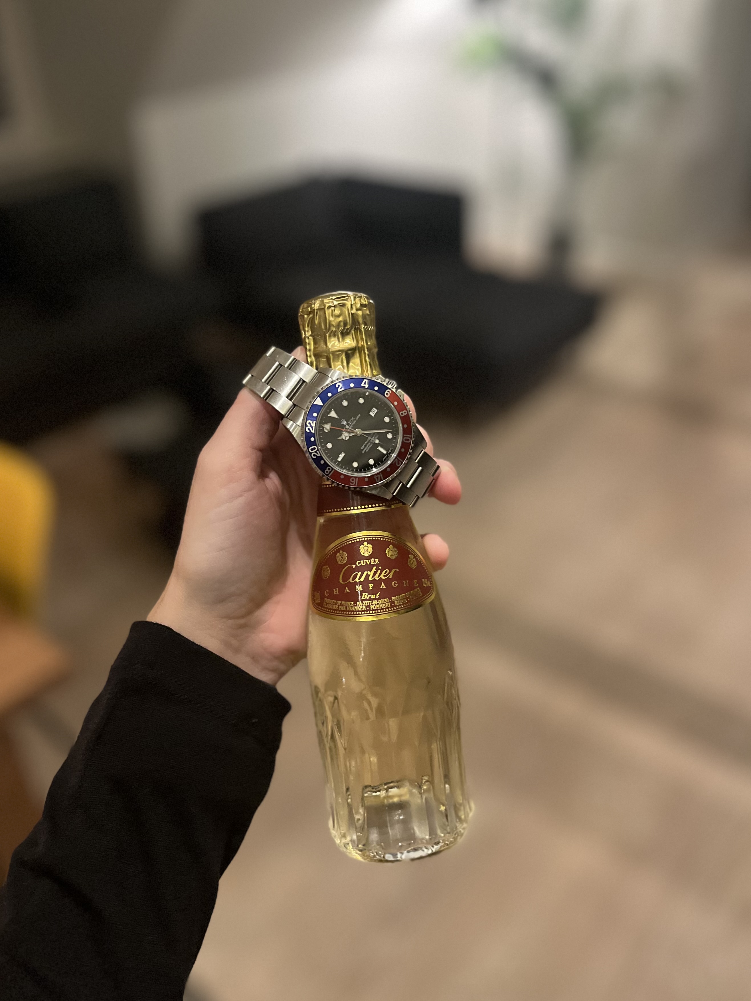 Geheel in horloge verzamelaar style. Met dank aan mijn AD. In de hand van mijn vrouw zodat het flesje wat groter lijkt ![]()