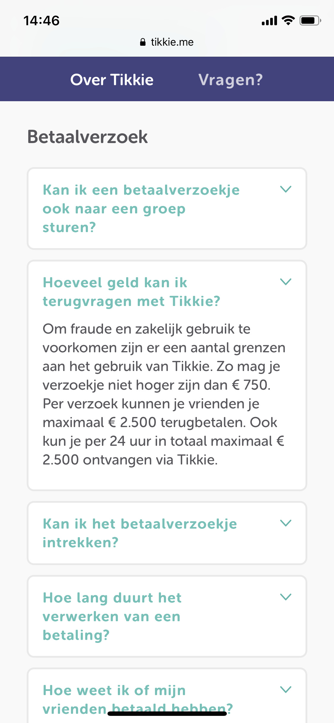 Mijn bank heeft een betaalverzoek met een limiet van 1k; ook hier zie je meteen of het is bijgeschreven.