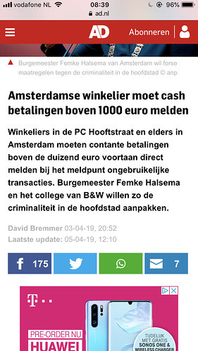 Volgens mij staat er “willen” in het AD stukje. Maar het is natturlijk compleet van de zotte. Alleen in nederland is men panisch voor cash geld. In de landen om ons heen is het contant betalen van grote bedragen geen enkel probleem. En … uhhh, als men het zwarte geld wat in omloop is eruit filtert krijgen we een economische dip.