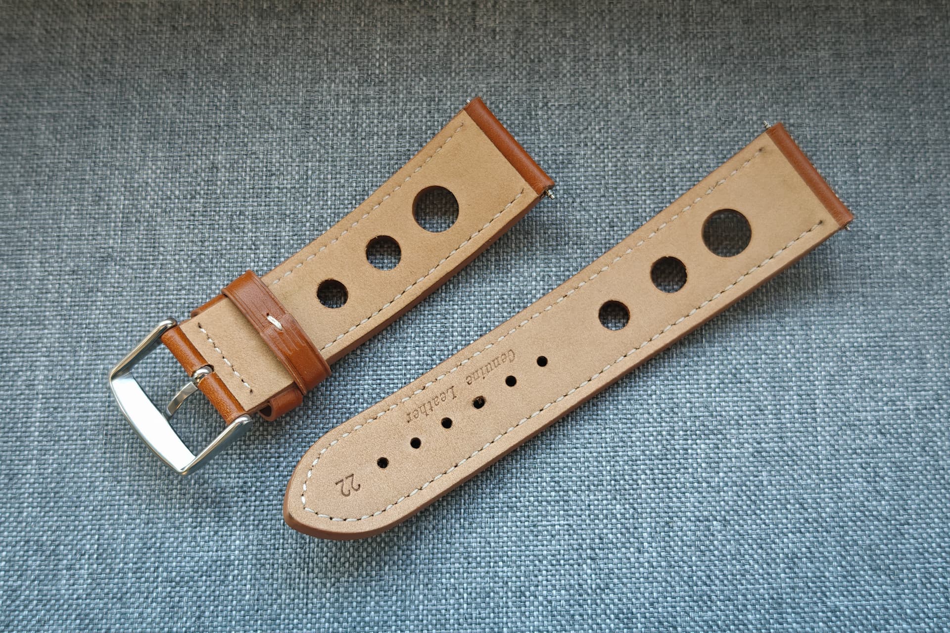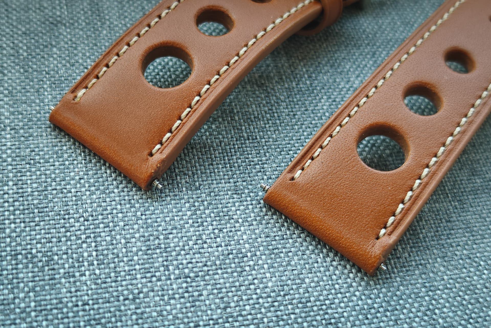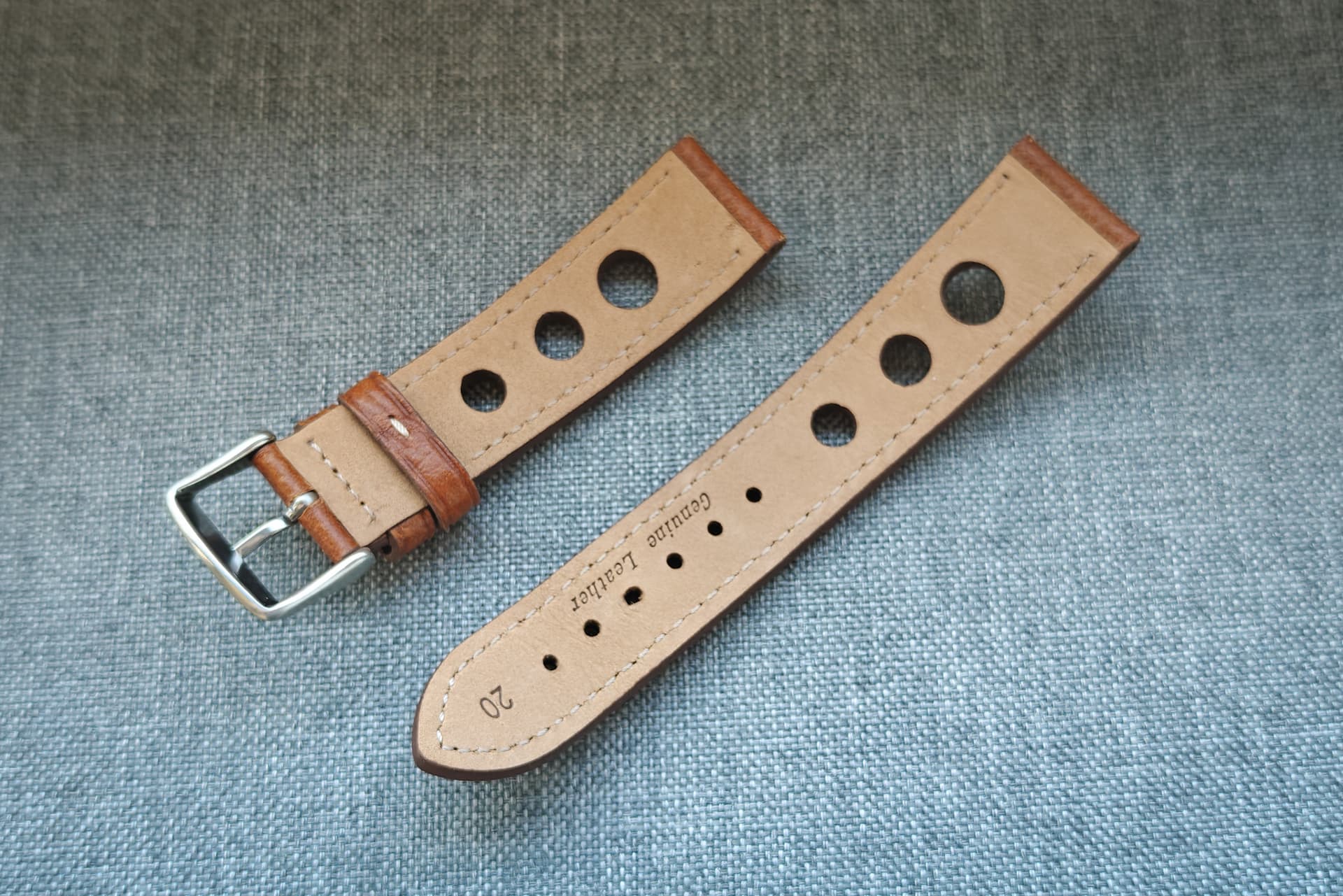- Bruine leren band in rally stijl van Localtime, 20mm. Gekocht voor mijn Seiko SSC813 maar vind het geen fijne match.