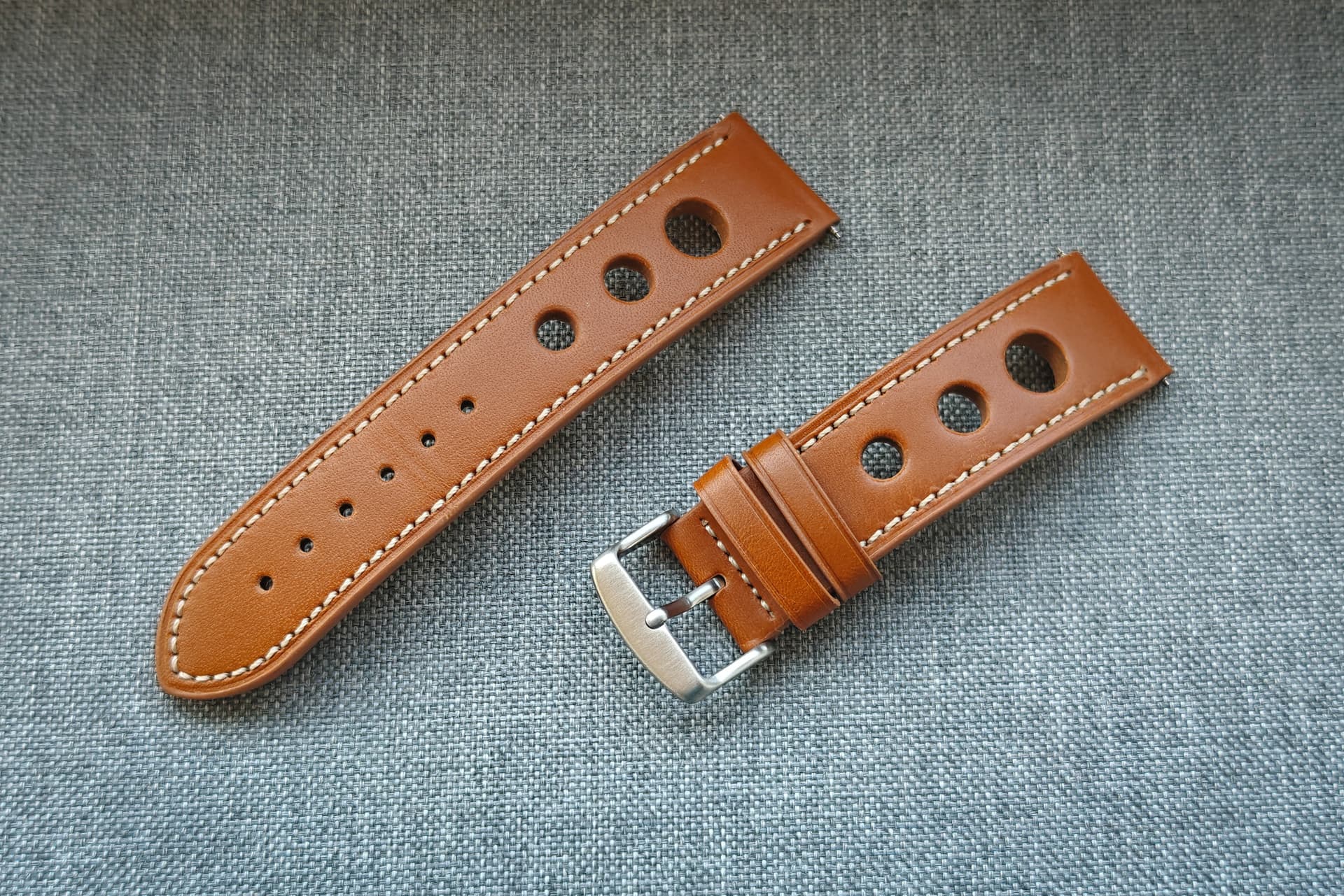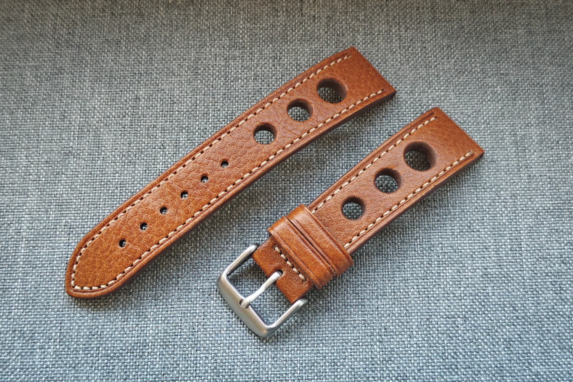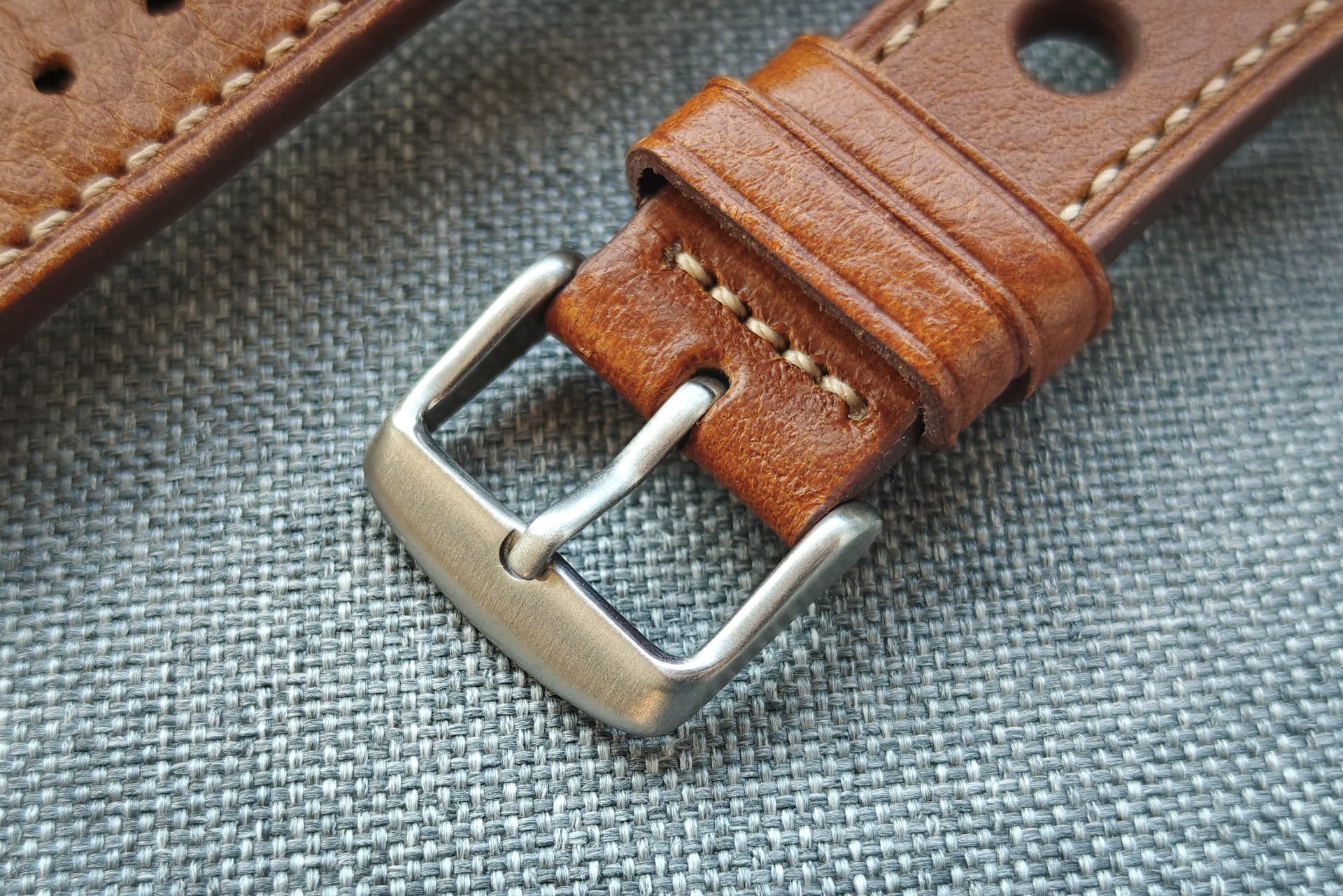 - Bruine leren band in rally stijl van Localtime, 20mm. Gekocht voor mijn Seiko SSC813 maar vind het geen fijne match.