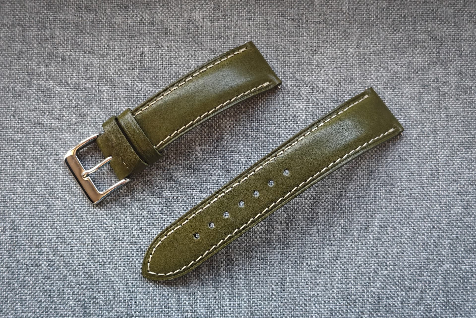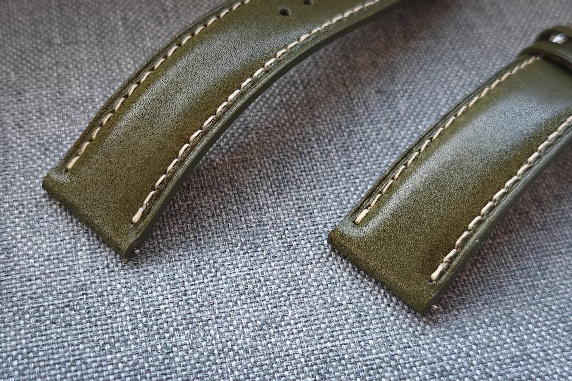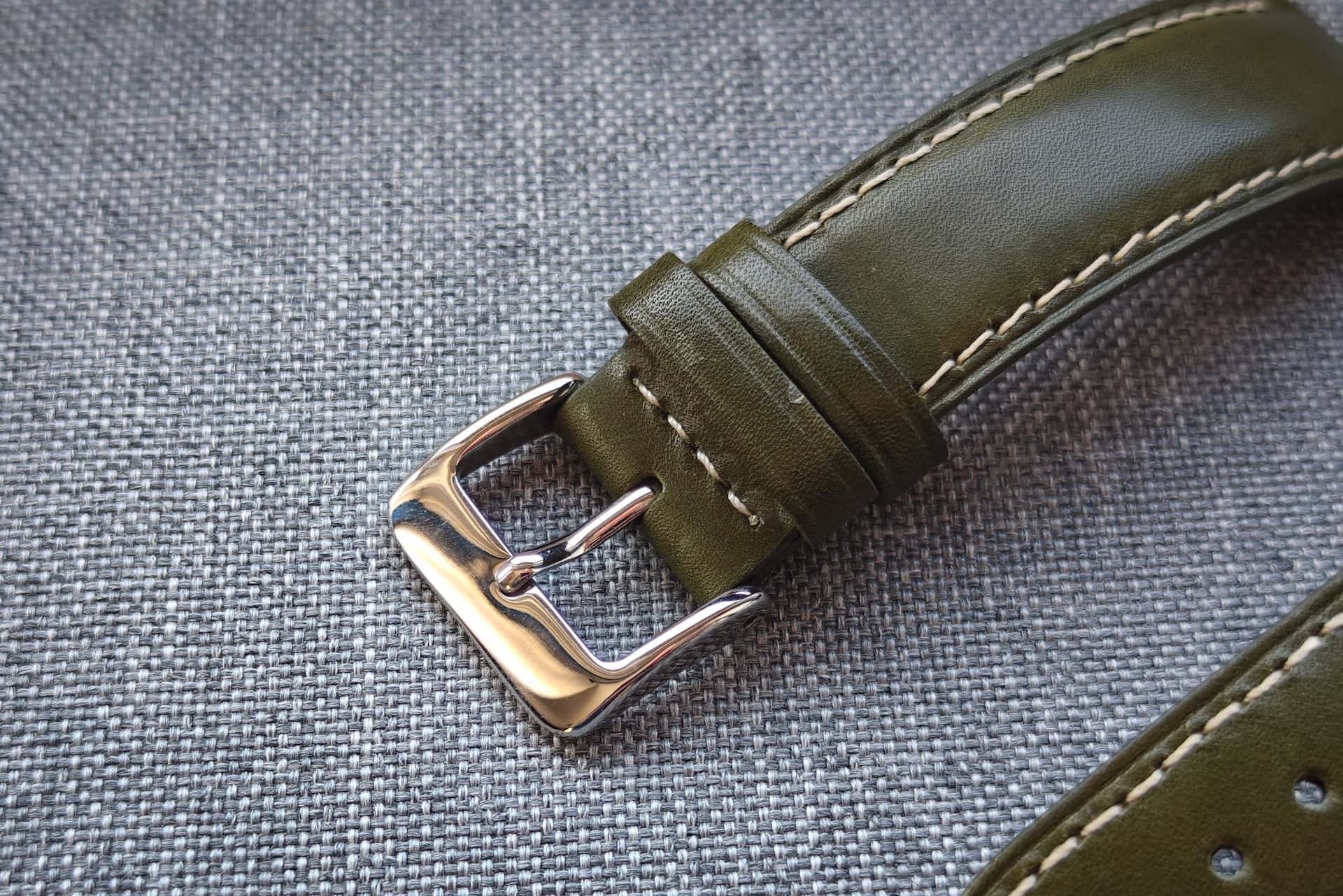 - Olijfgroene leren band van Geckota, 20mm, quick release pins. Poos geleden hier uit blauw gevist maar de kleur past mij niet. Jammer want wel een hele mooie band!