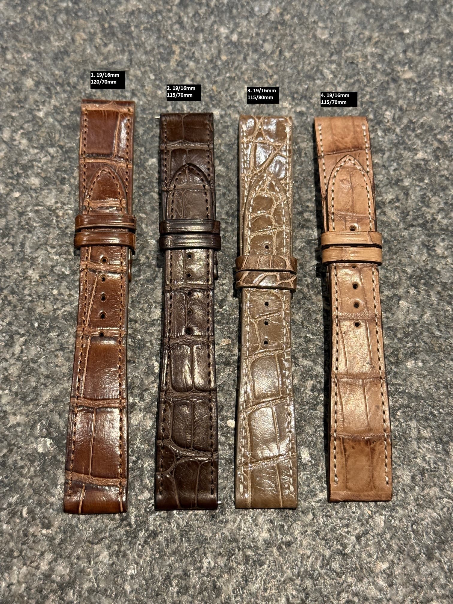 4 bandjes gemaakt door Jean Paul Menicucci. Alle 4 van echt alligatorleer. Prijs per stuk €100,-