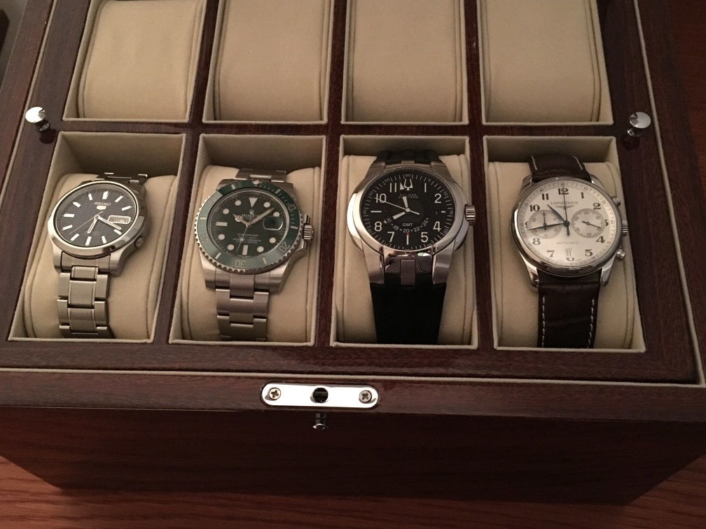 Ik heb nog een mooie koffer uit de tijd dat ik voor kwantiteit ging, krijg ik nu nooit meer vol met als gevolg dat die gevuld is met obscure zooi en en horloges die er draag er bovenop liggen