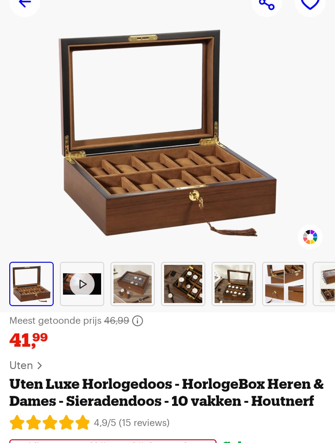Ik zit al even te speuren, vooral bij oude topics, maar wilde graag jullie actuele ervaringen checken: ik ben op zoek naar een houten horlogedoos voor 8-10 horloges, met een goede afwerking (denk: mooie lak/fineer of high gloss, solide scharnieren, degelijke/stevige kussens) maar zonder de hoofdprijs te betalen.