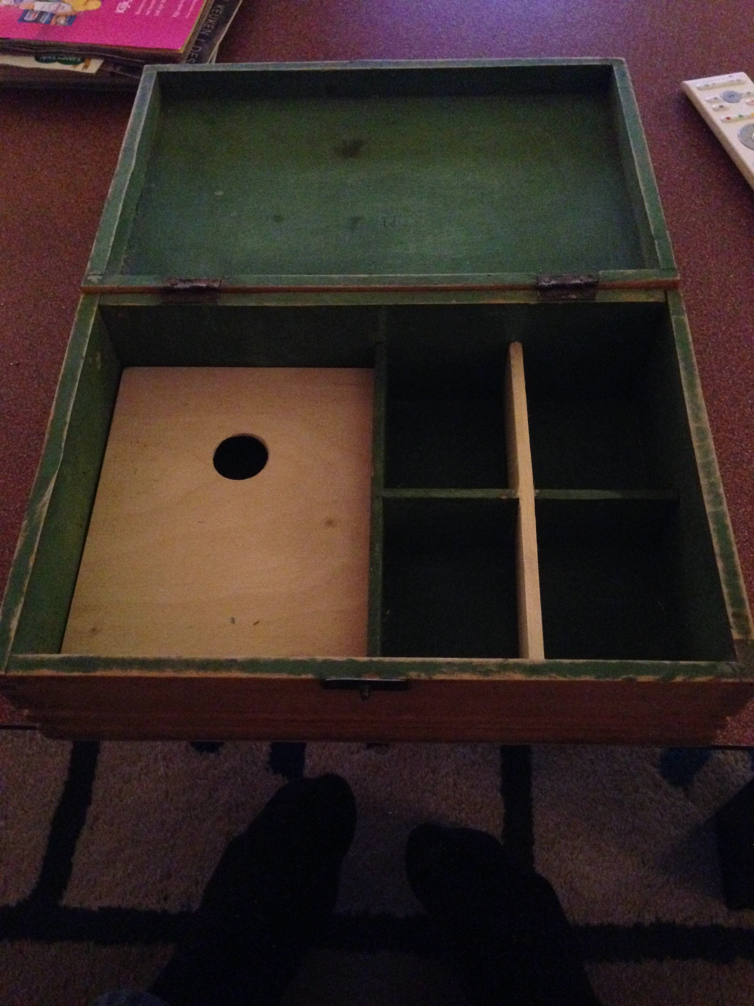 Misschien dat ik het kistje nog een keer lak en er een ruitje in maak.