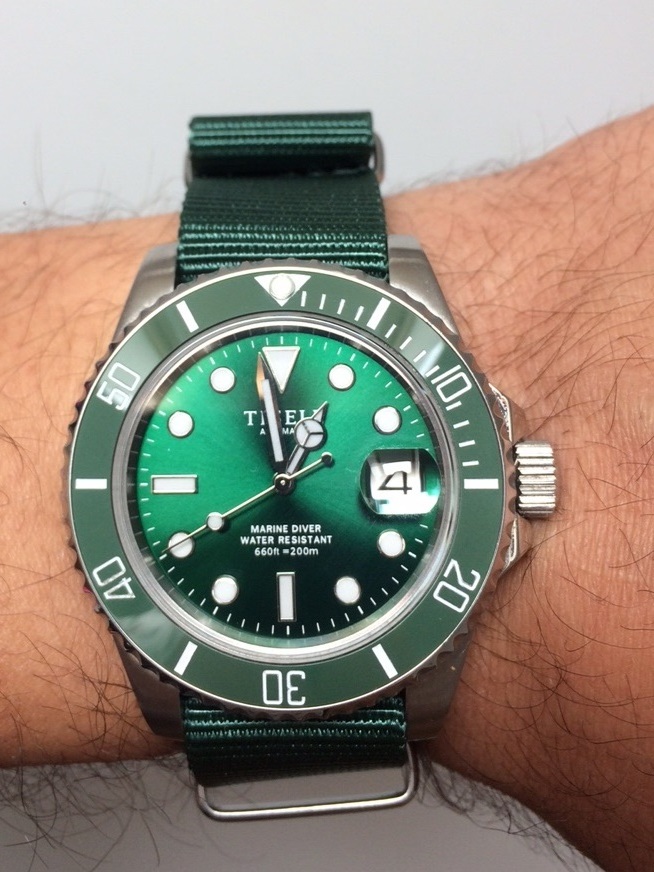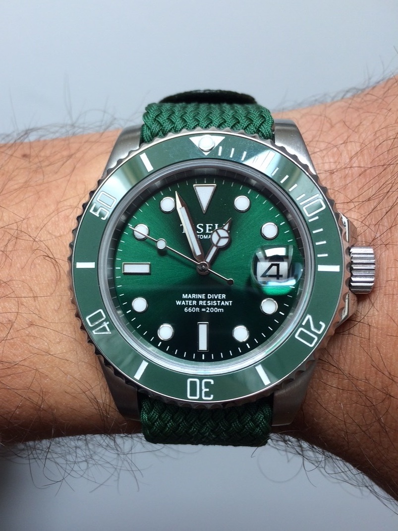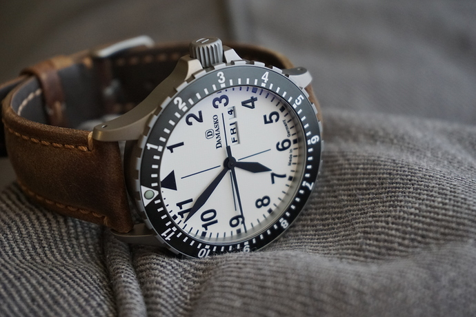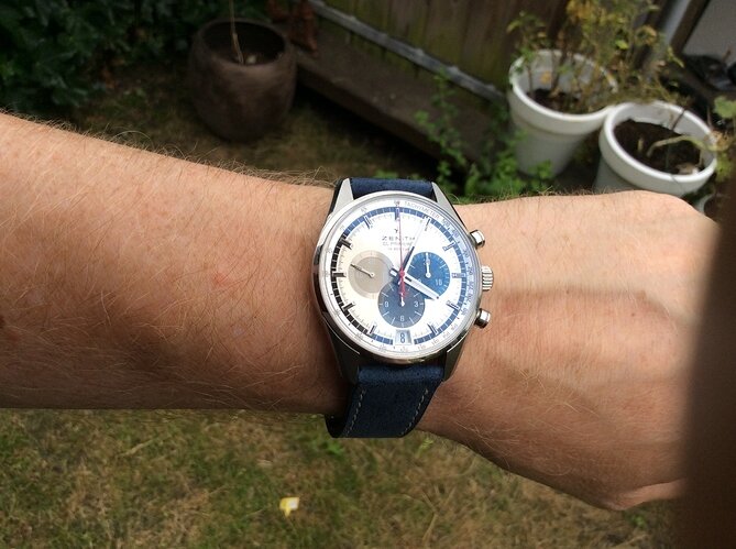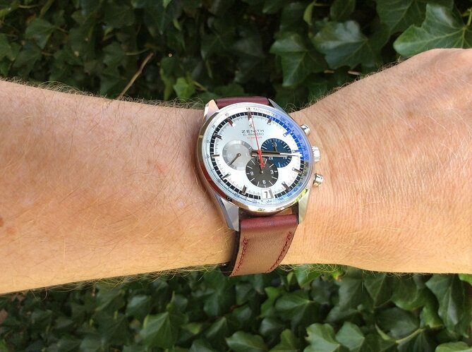 Ik vind een zwarte wijzerplaat (en een heel donkerbruine à la SARB) beter combineert met een kleur bruin die voldoende contrast geeft, dus wat lichter (of met wat geel- of roodtinten in het bruin). Zoals in mijn voorbeeld. Ik realiseerde me dat na het lezen van een WUS draad waarin iemand dat stelde.