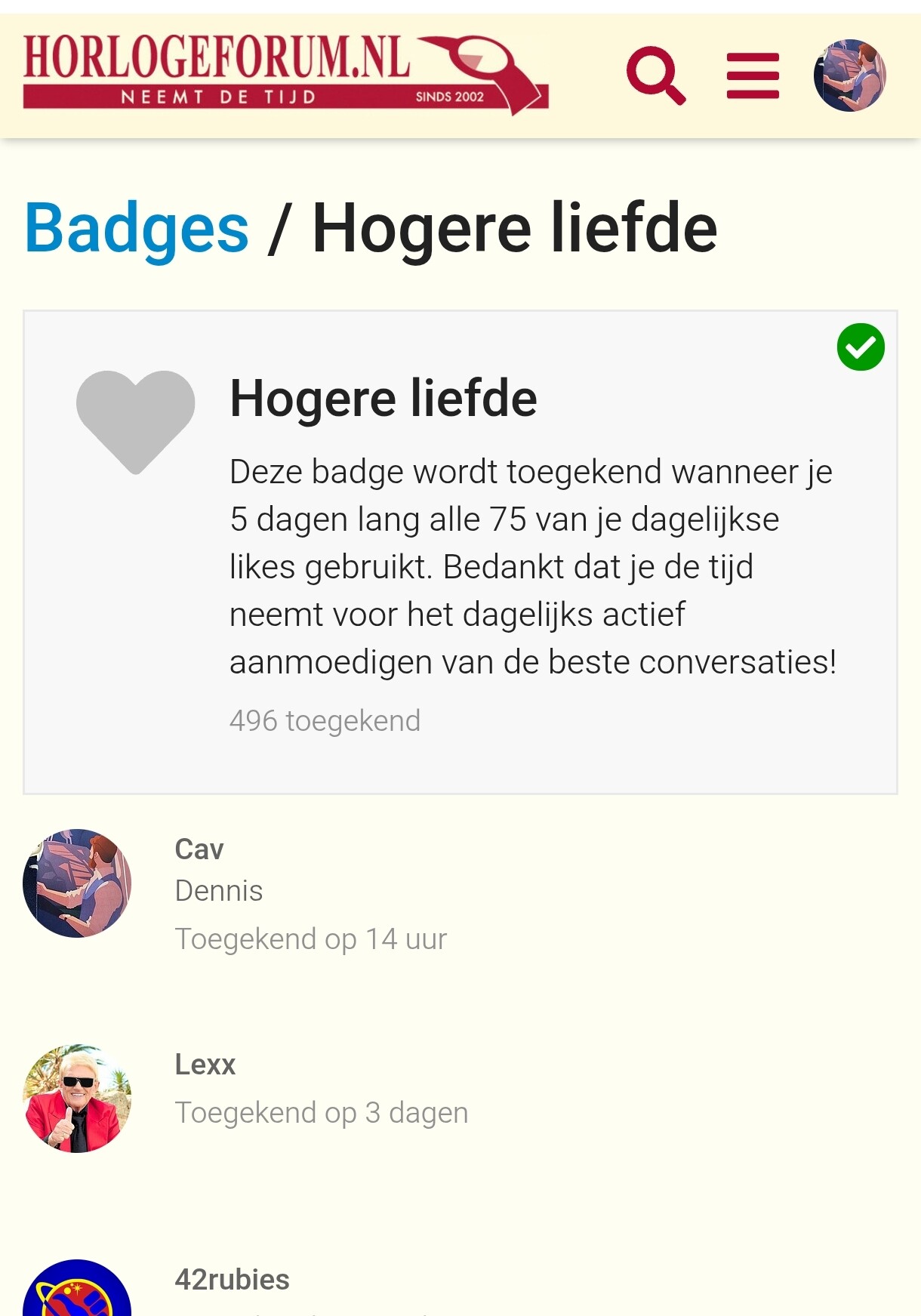 Ik ben al een paar dagen door mijn likes heen, maar dat heeft me wel weer een nieuwe badge opgeleverd. ![]()