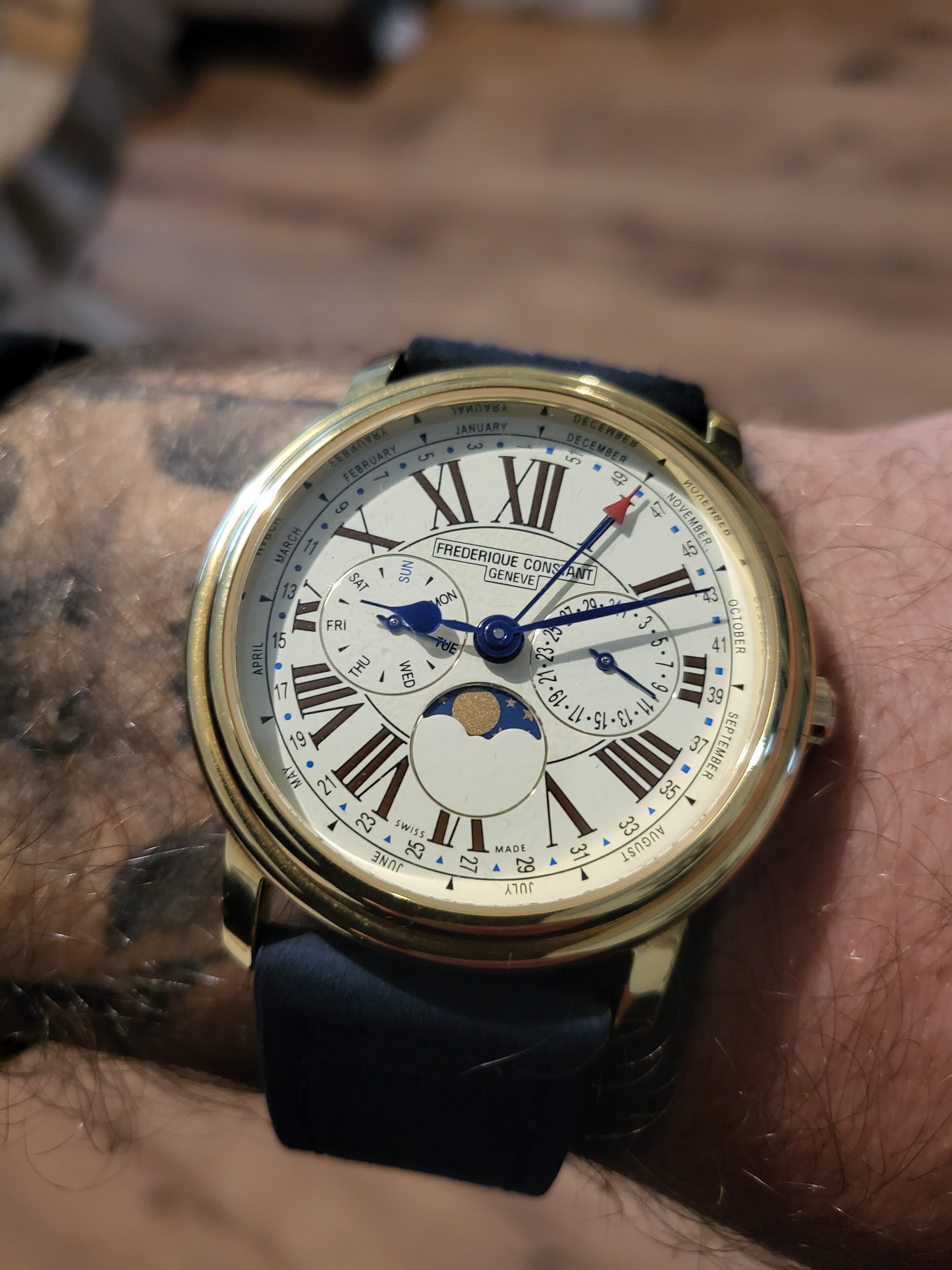 Na aankoop van dit horloge zat ik thuis en merkte ik dat de secondewijzer niet liep, maar dat hij wel netjes tijd hield. Verkoper gebeld en foto’s gestuurd en die snapte er ook niks van! Bleek achteraf de weekaanduider te zijn:sweat_smile: