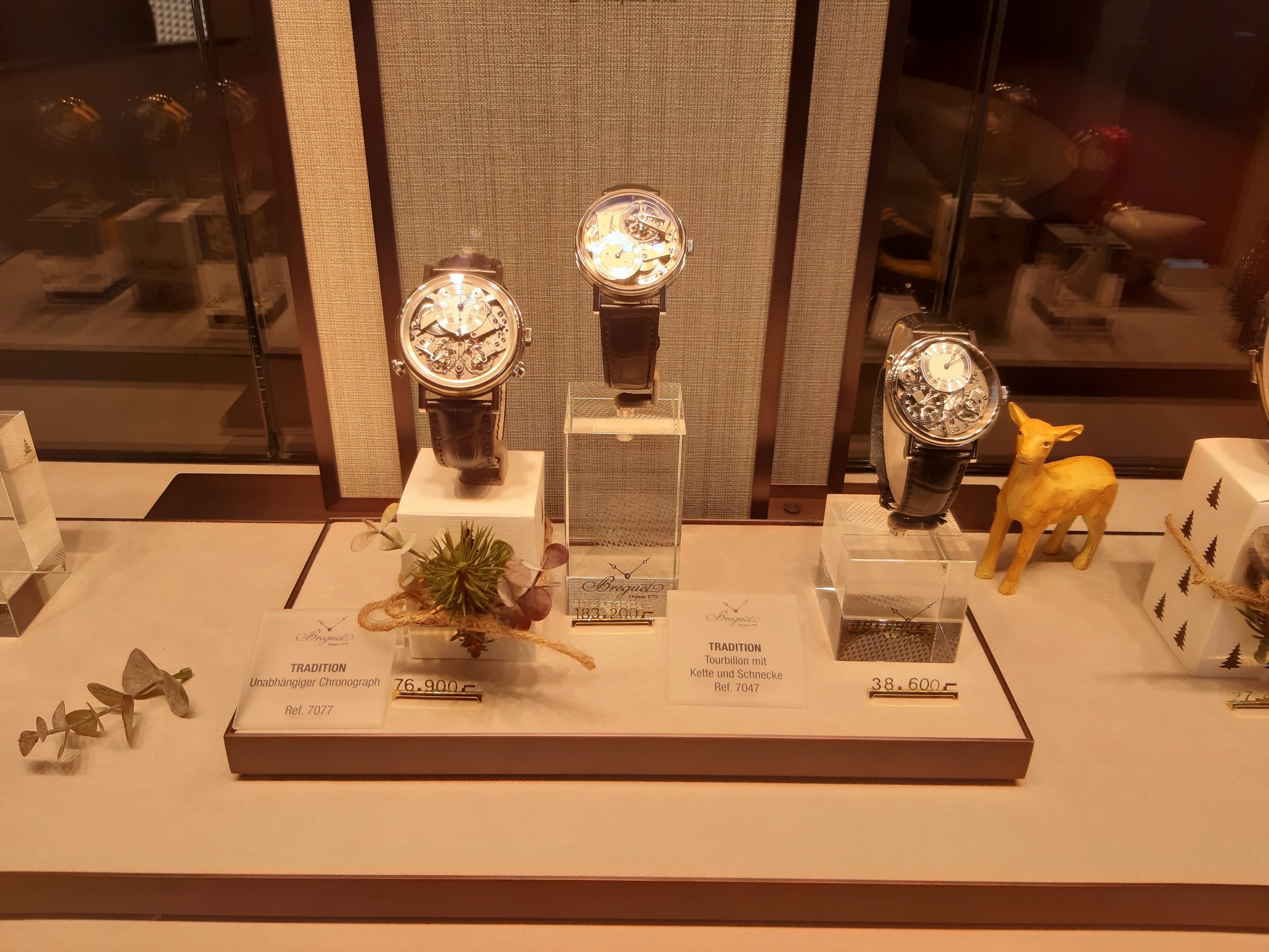 Op zondag heb ik eigenlijk vooral naar lege vitrines gekeken en me afgevraagd welke horloges wel niet bij de bizarre prijzen horen. Mijn plan was om de volgende dag een aantal winkels binnen te lopen en hopelijk iets te kunnen passen. Volgende ochtend zat ik toch te twijfelen of het wel de bedoeling is dat ik zo’n zaak binnenloop dus snel maar even een topic aangemaakt met de vraag of dit kan.
