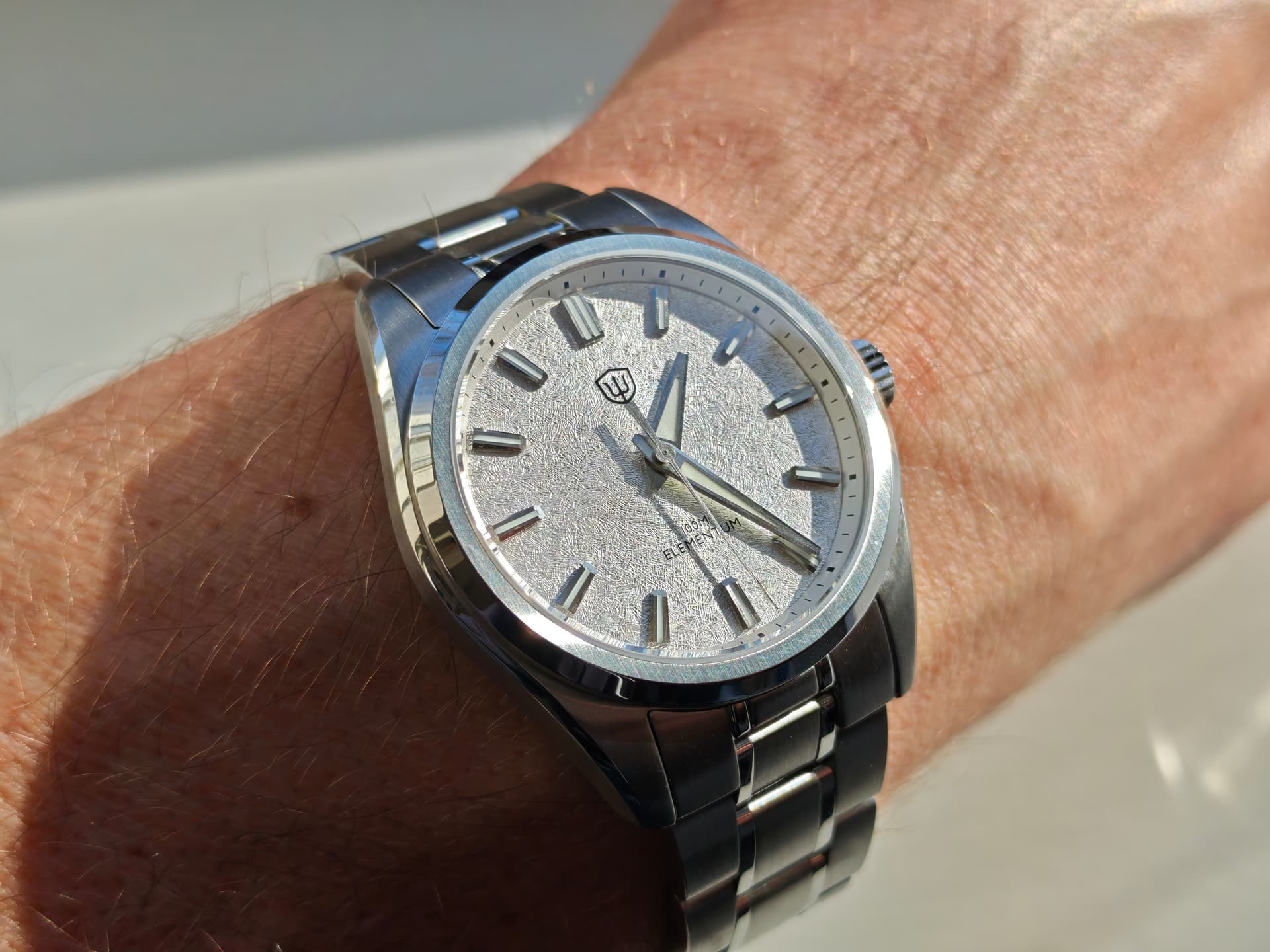 De wijzerplaat is strak en het zwart oogt erg schoon. Ik had wel graag een datumvenster gezien. Ik dacht eraan om de BOP-versie te nemen, maar heb dat toch niet gedaan omdat ik van plan ben dit horloge dagelijks te dragen.