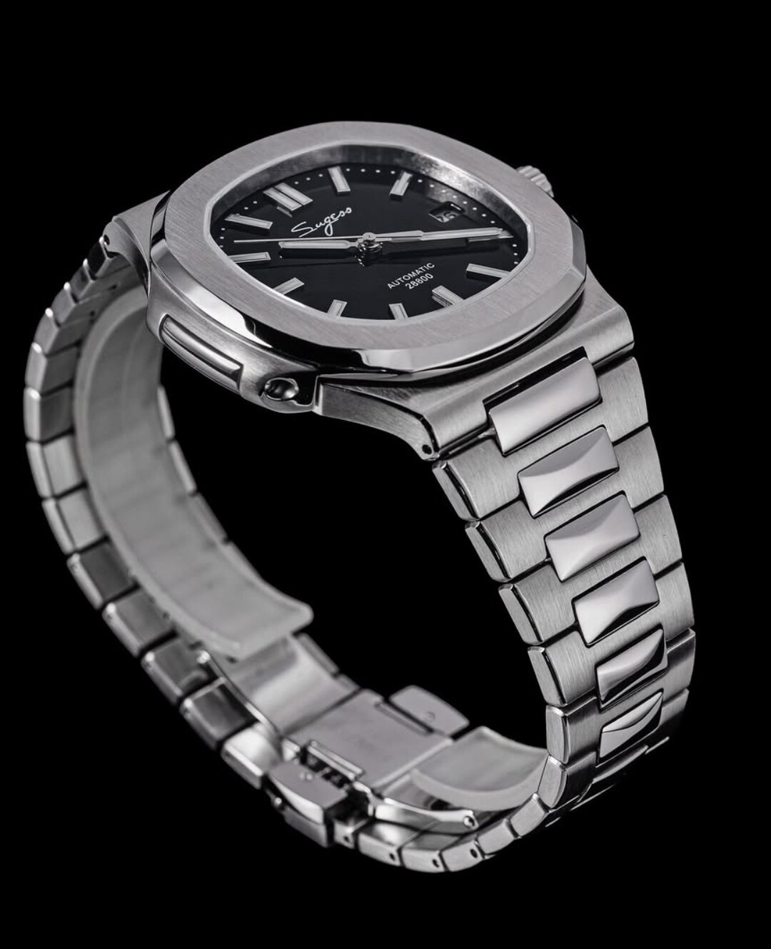 Voor een horloge van $200: waar heeft Sugess kosten bespaard? De band. Laat je niet misleiden door de foto’s. De band ziet er prima uit, maar voelt toch wat “minder” aan dan ik had verwacht. Om de een of andere reden verwachtte ik schroefpennen in de schakels, maar dit zijn pin-en-kraag (pin and collar) schakels. Ik haat die… Eén kleine fout en de pin is al krom. Het gevoel aan de binnenkant is oké, niets bijzonders. De afwerking van de band is waarschijnlijk waar ik iets in de richting van Tudor had verwacht of iets dergelijks. Het voelt alsof ze iets meer tijd hadden kunnen besteden aan het polijsten van de schakels. Hoewel hij er mooi uitziet, herinnert de band je eraan dat dit “maar” een horloge van $200 is.