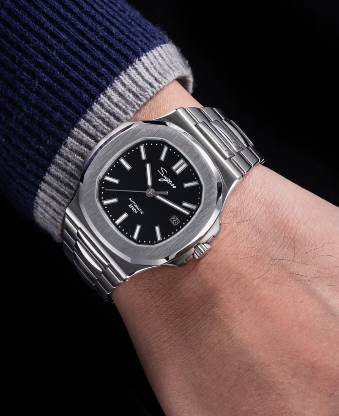 De “28800”-aanduiding op de wijzerplaat. Echt, Sugess? Was het nou écht nodig om dit erop te zetten? Zonder die tekst was het beter geweest. Of zet er dan liever een mooi datumvenster op.