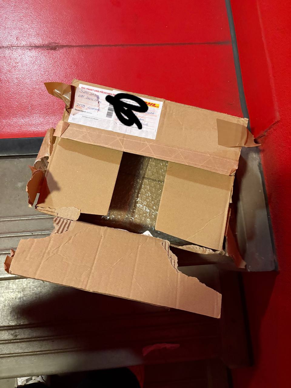 Helaas. Dhl heeft de doos op een verkeerd adres in een portiek gelegd en daar is de doos leeggehaald.