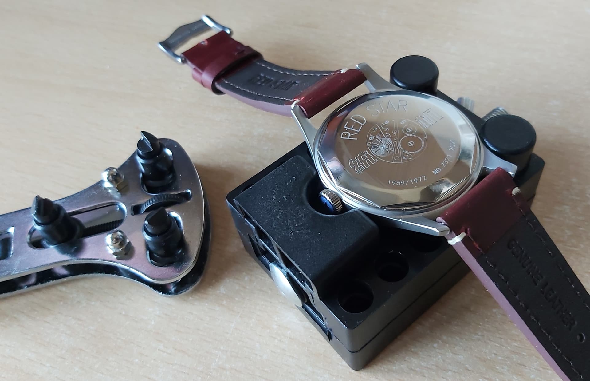 We zijn twee dagen verder. Zoals gezegd is deze Red Star 1972 mijn eerste mechanische horloge. Nog steeds erg blij mee, maar, er is altijd een maar, ik ben natuurlijk de ongelofelijke nauwkeurigheid van Casio’s gewend. Wat blijkt nu? Het Tongji mechaniek loopt per dag 10 seconden te langzaam! Shock horror.