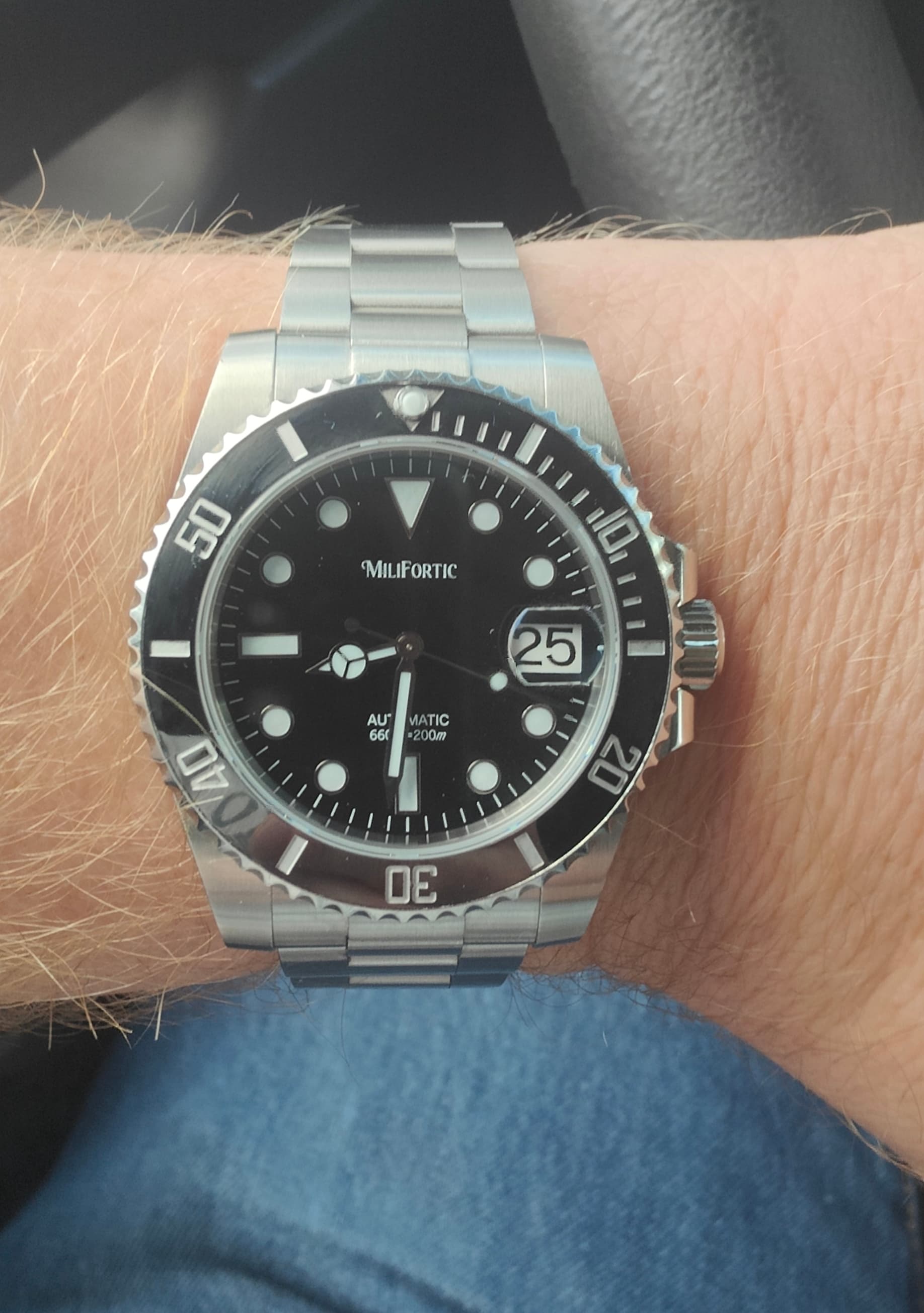 Ik ben sinds afgelopen weekend ook in het bezit van Milifortic. Echt een fijn horloge met saffier glas en keramische bezel. Ik heb tot nu toe nog geen last gehad van de scherpe randjes aan de gesp.