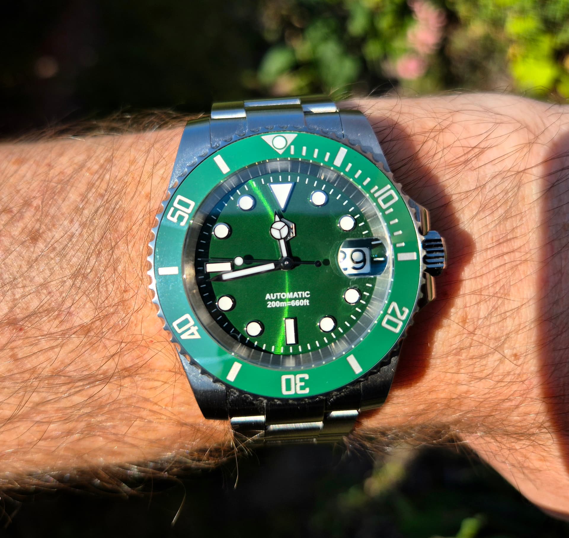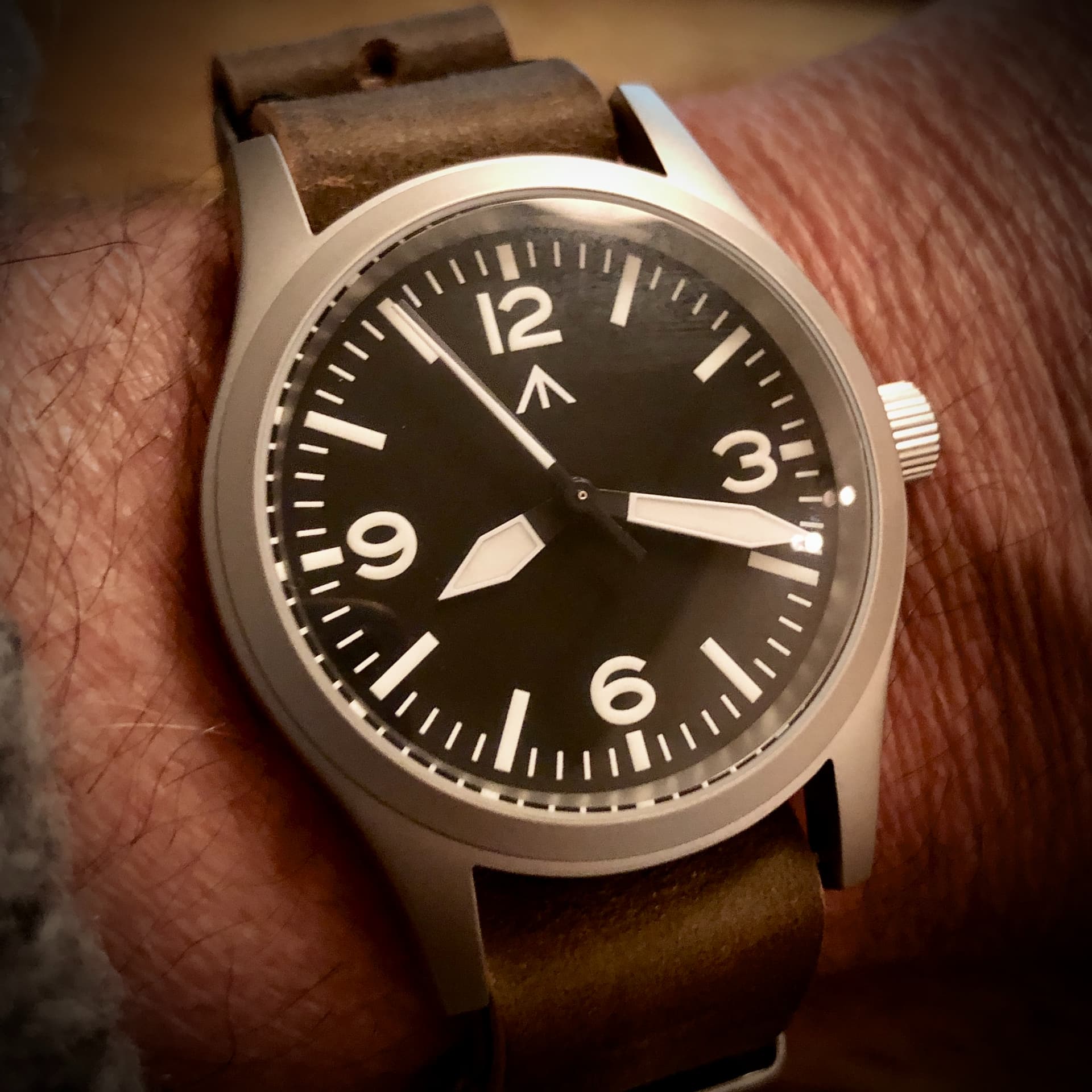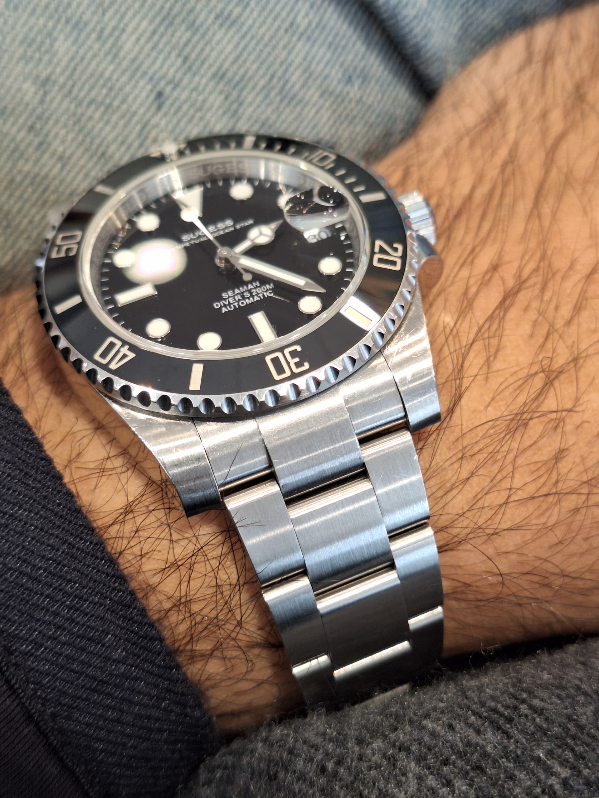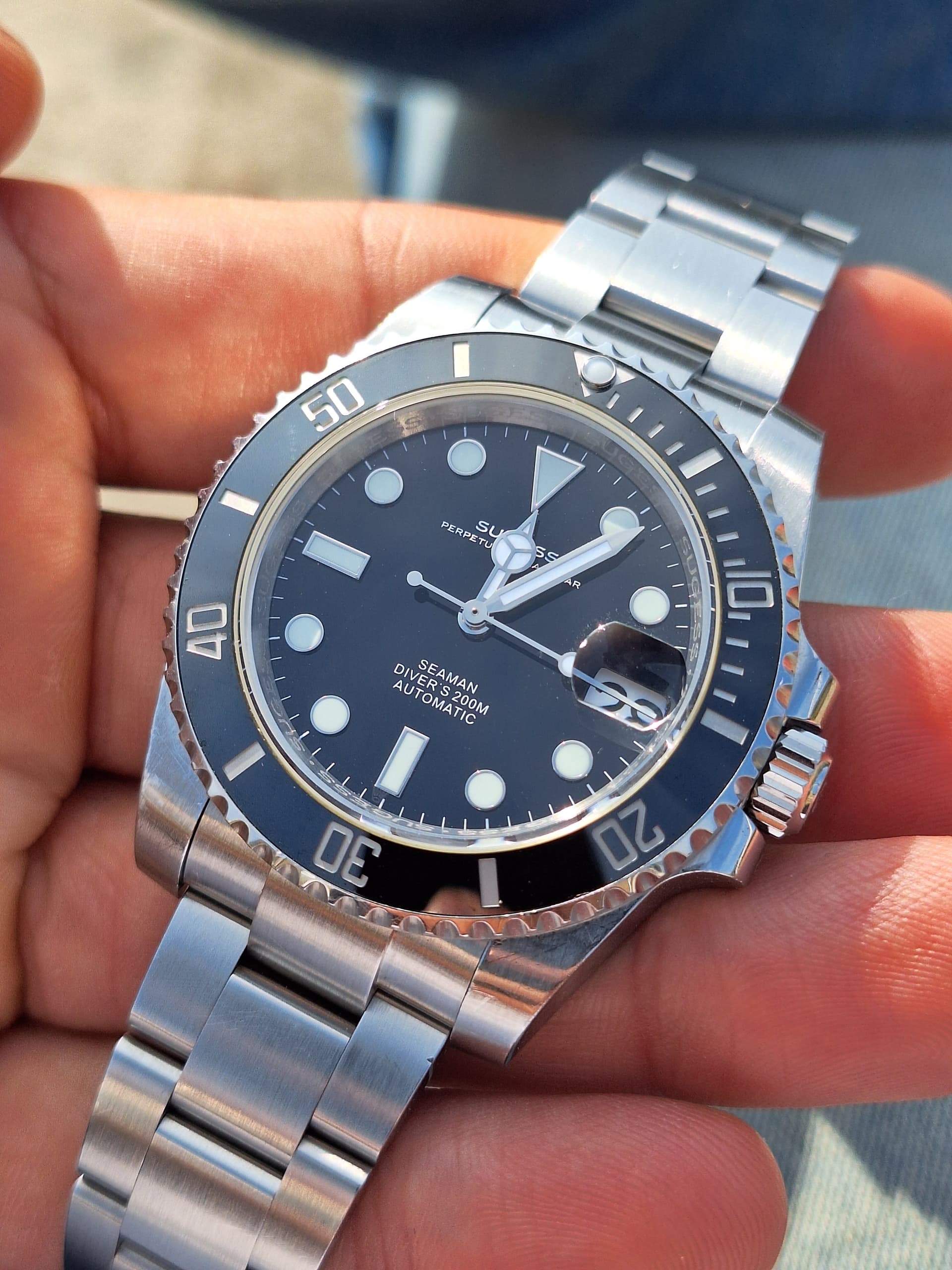 Dank je! Ik weet zelf eigenlijk nog niet of ik hem echt mooi vind. Maar wel super makkelijk af te lezen, quartz dus geen gedoe, saffier, waterdicht tot 100 meter (zeggen ze) en zo goedkoop dat als er iets mee gebeurt dat ook niet meteen een ramp is. Wat ook fijn is: De afstand tussen de springbars en de kast is lekker groot dus ook een eventueel dikke Nato kan er makkelijk op.
