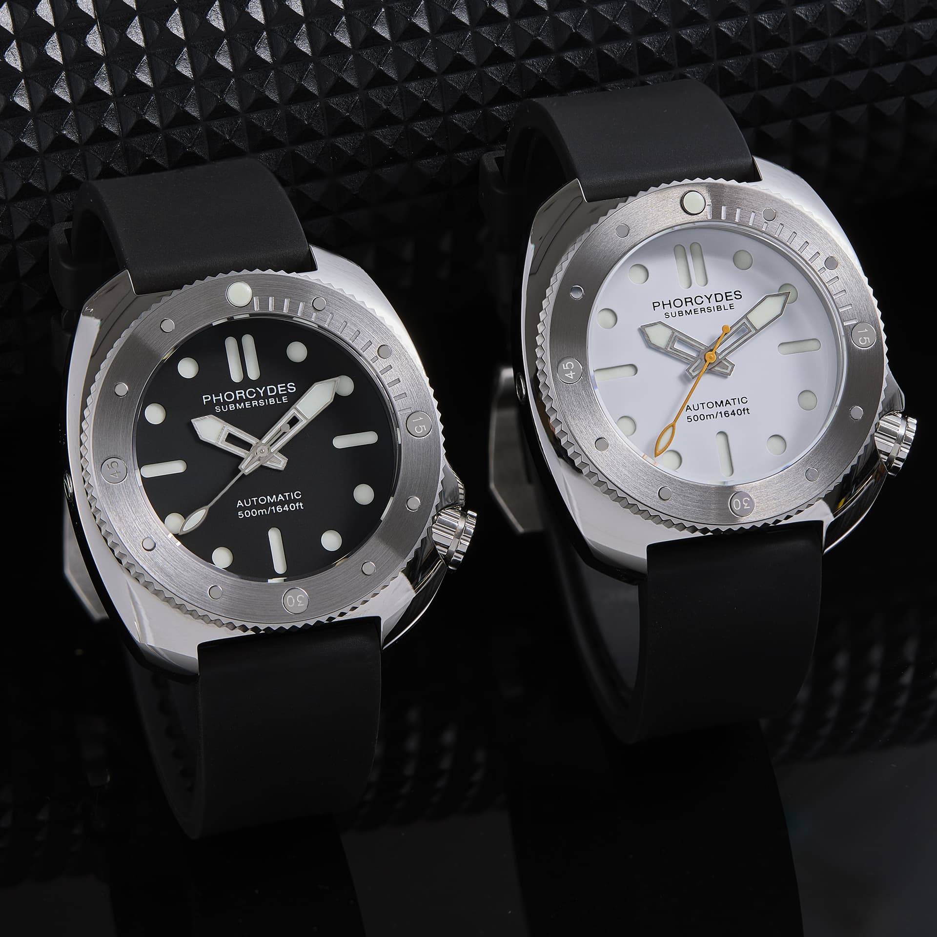 Kwam deze tegen, de Phorcydes (“kinderen van de oude man van de zee”) PH-2 “LIP”. Ziet er best lekker uit, met Wolbrook-achtige BOR-band. Het zou een hommage zijn van een LIP duiker, maar ik kan hem niet vinden. Lume bestaat, net als op de Baltic Hermétique, uit blokken in groen, oranje of blauw (en een meerkleurige optie).