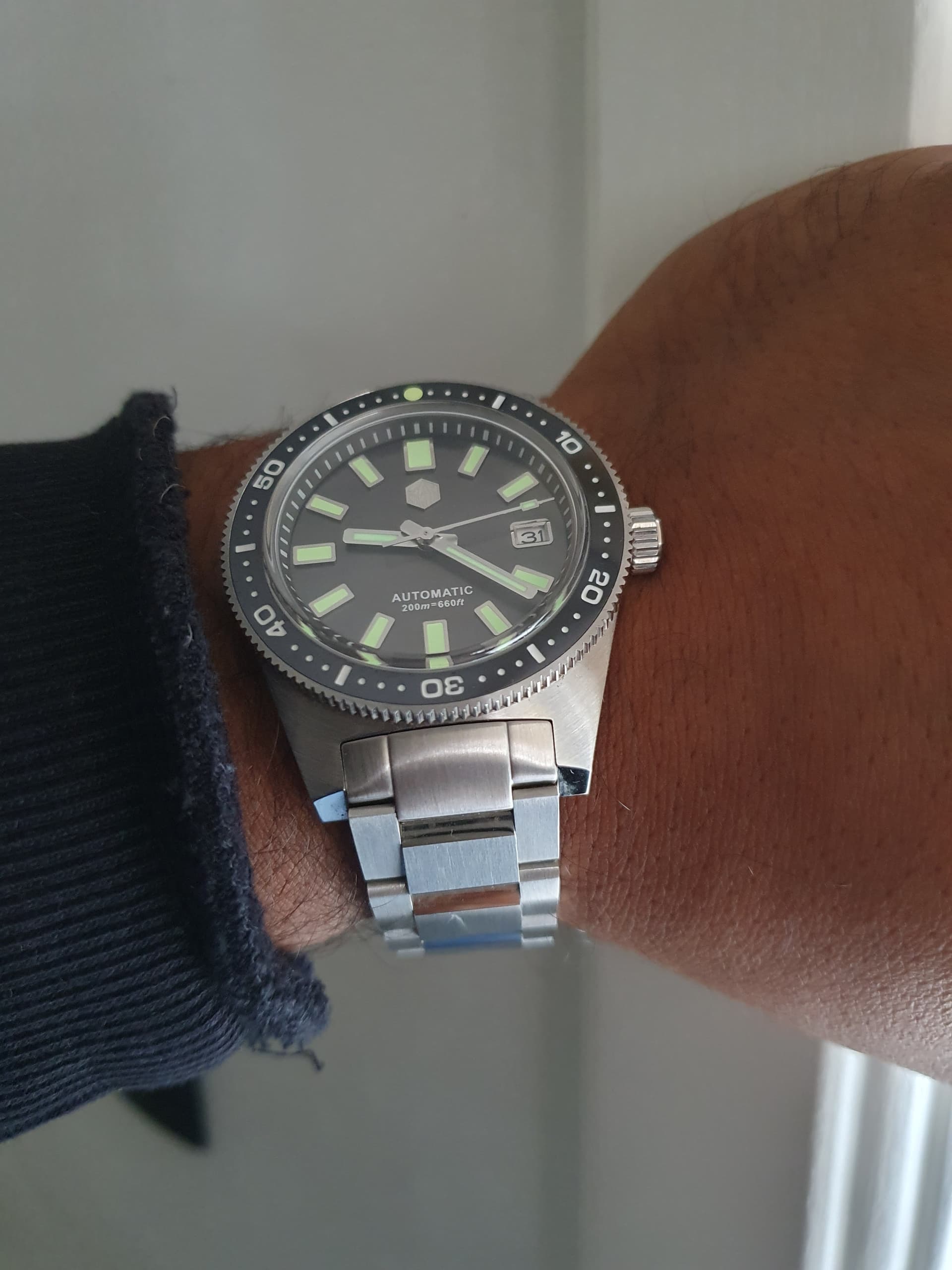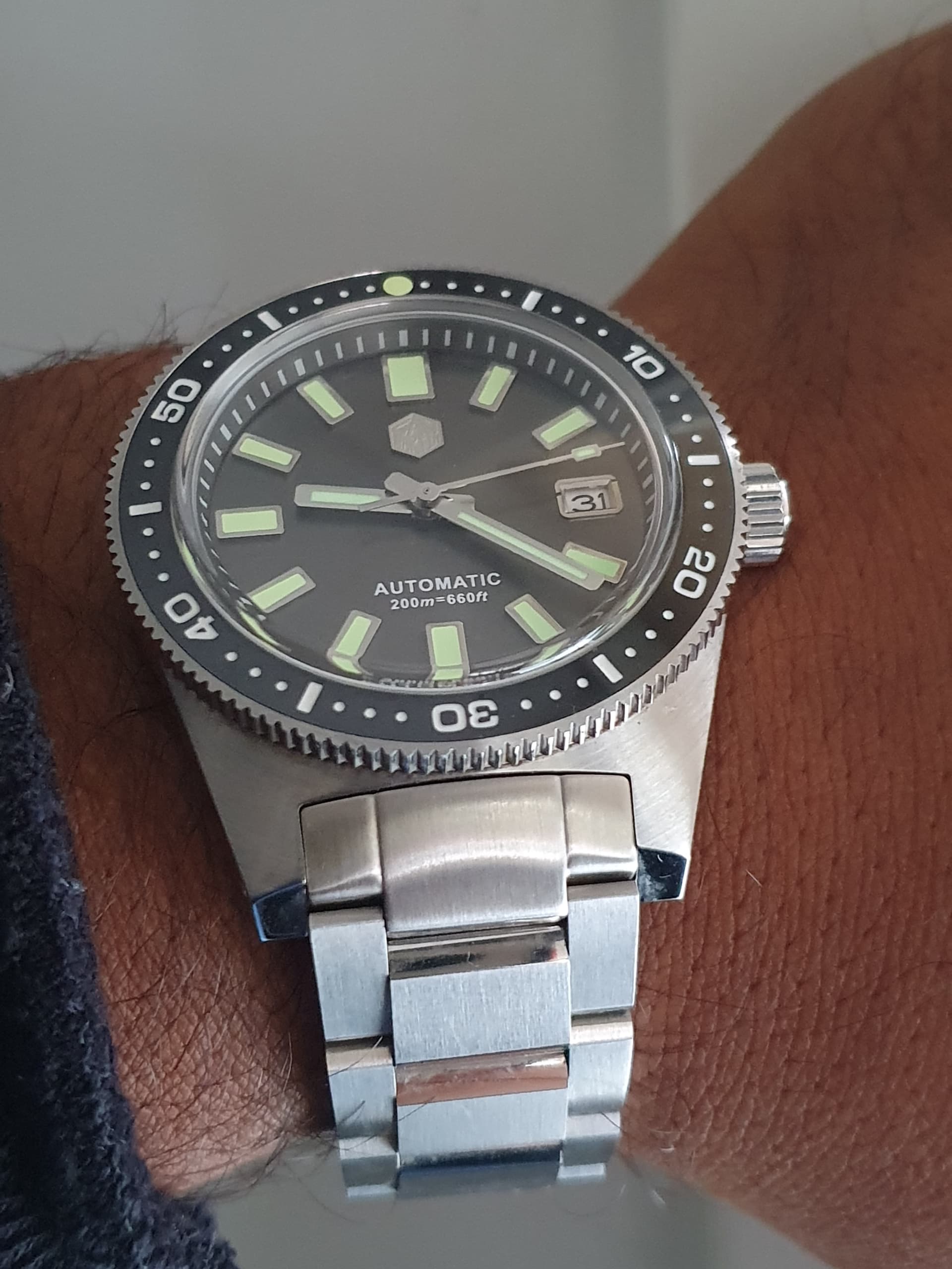 Is dit wel een 62MAS homage, ook al kondigt oom Ali het wel zo aan? Ik ben geen Seiko kenner, maar ik ken dat model niet met Arabische cijfers als indices. Lijkt me meer een hommage aan de generieke skindivers van de sixties (waar de GO SeaQ, waar de San Martin weer erg op lijkt, eigenlijk een homage aan is).