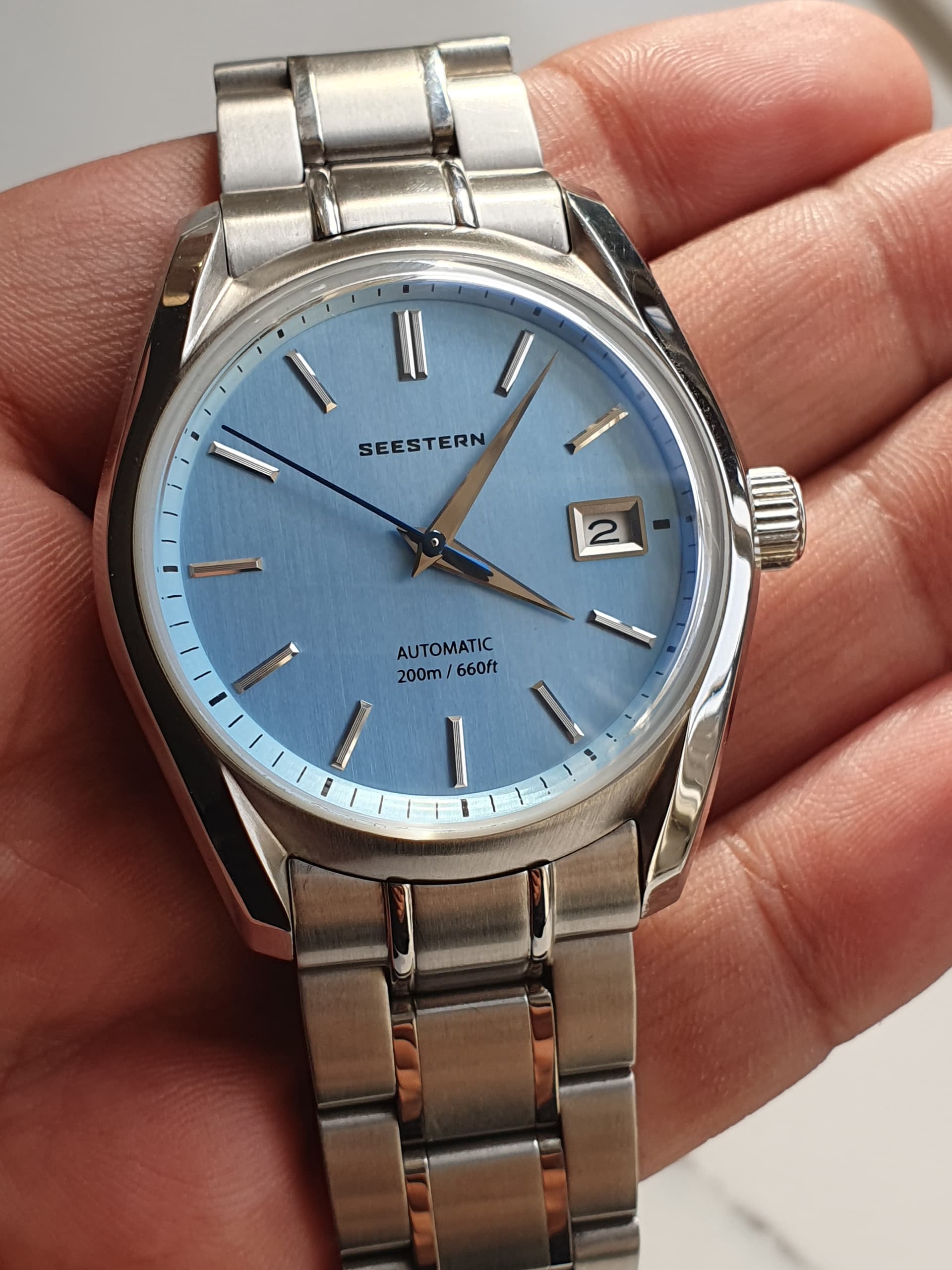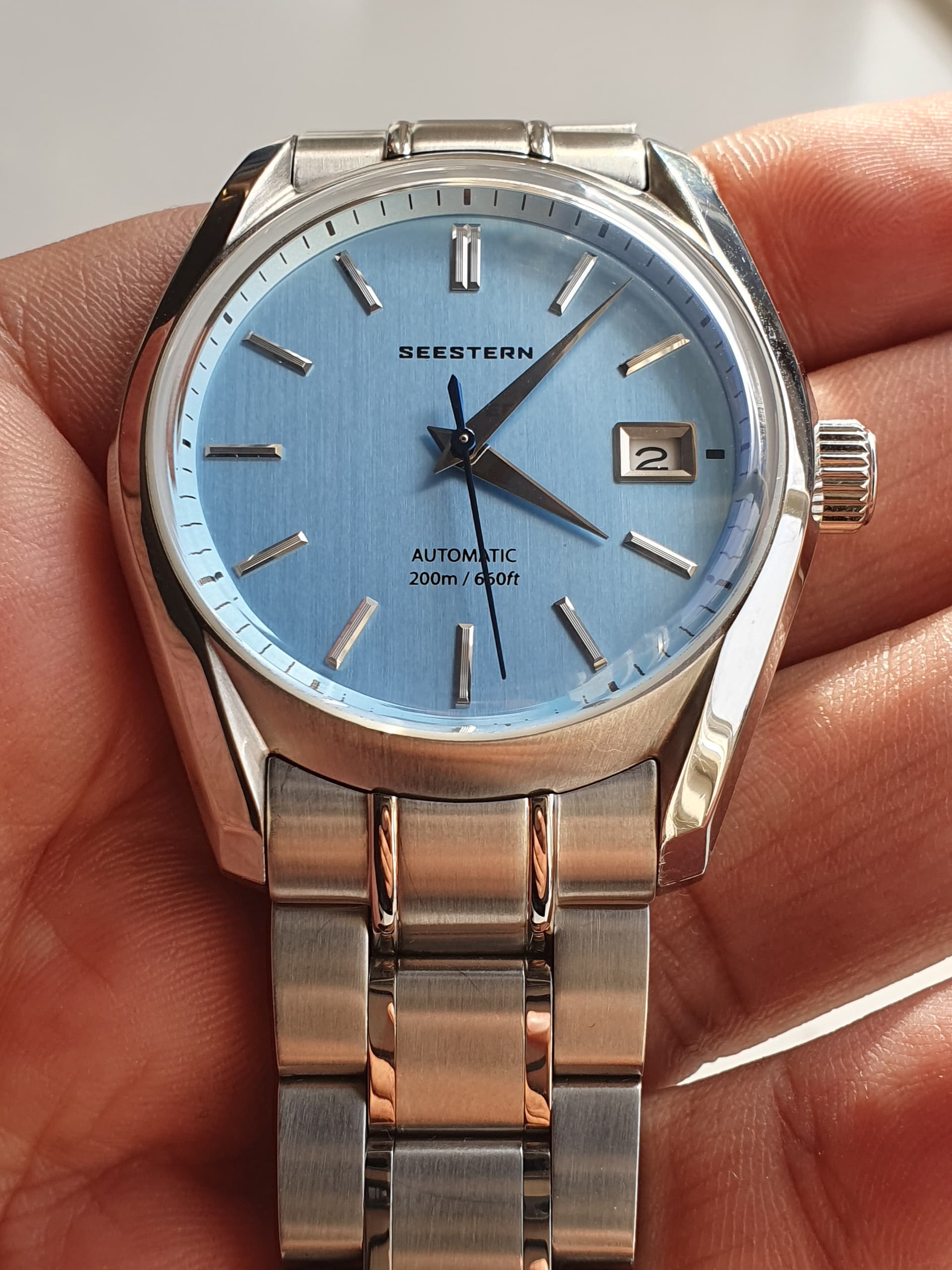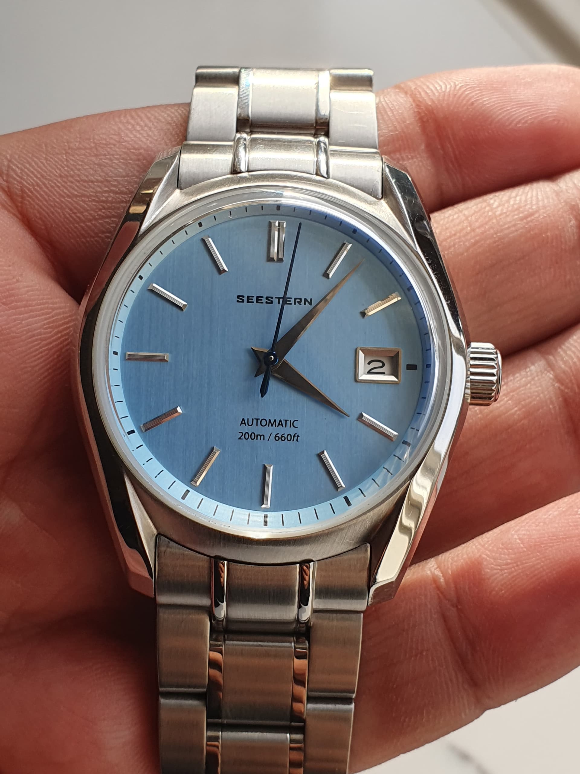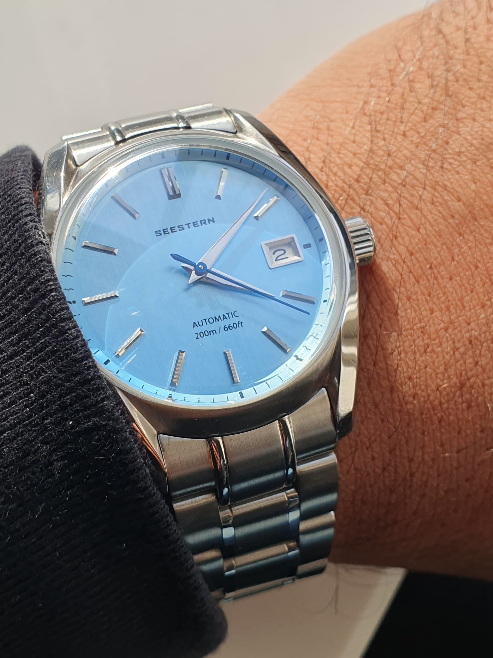 Ik heb deze gehad, mooi afgewerkt horloge, toffe structuur van de wijzerplaat maar erg plomp qua afmetingen, 't is net allemaal een tandje of twee te groot, waardoor ook de wp nogal leeg blijft.