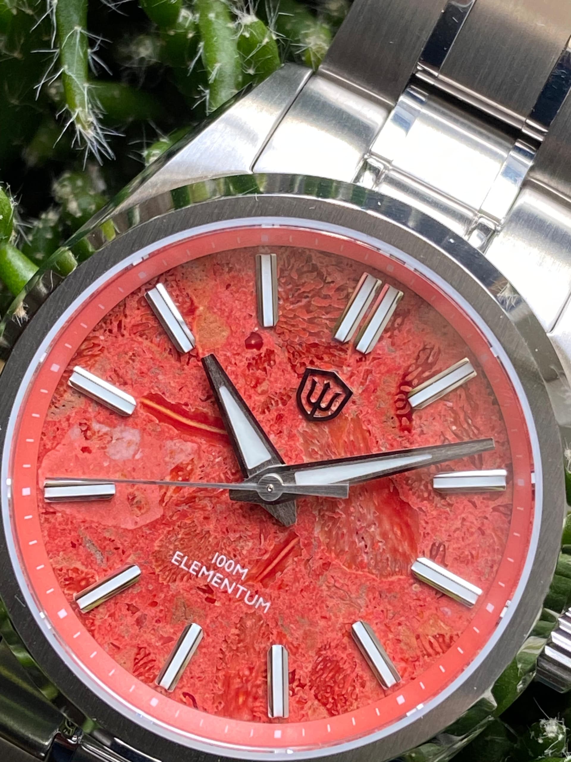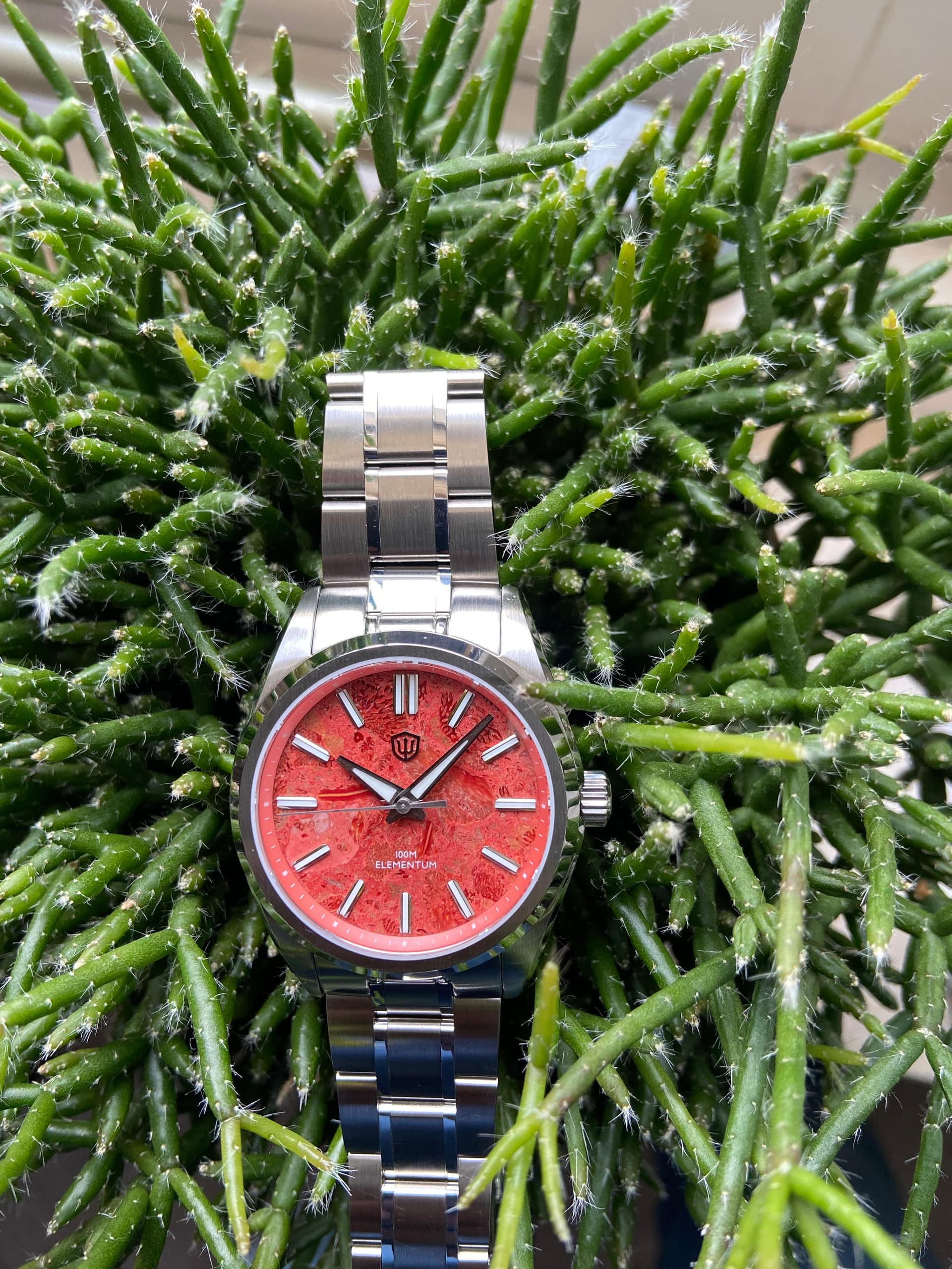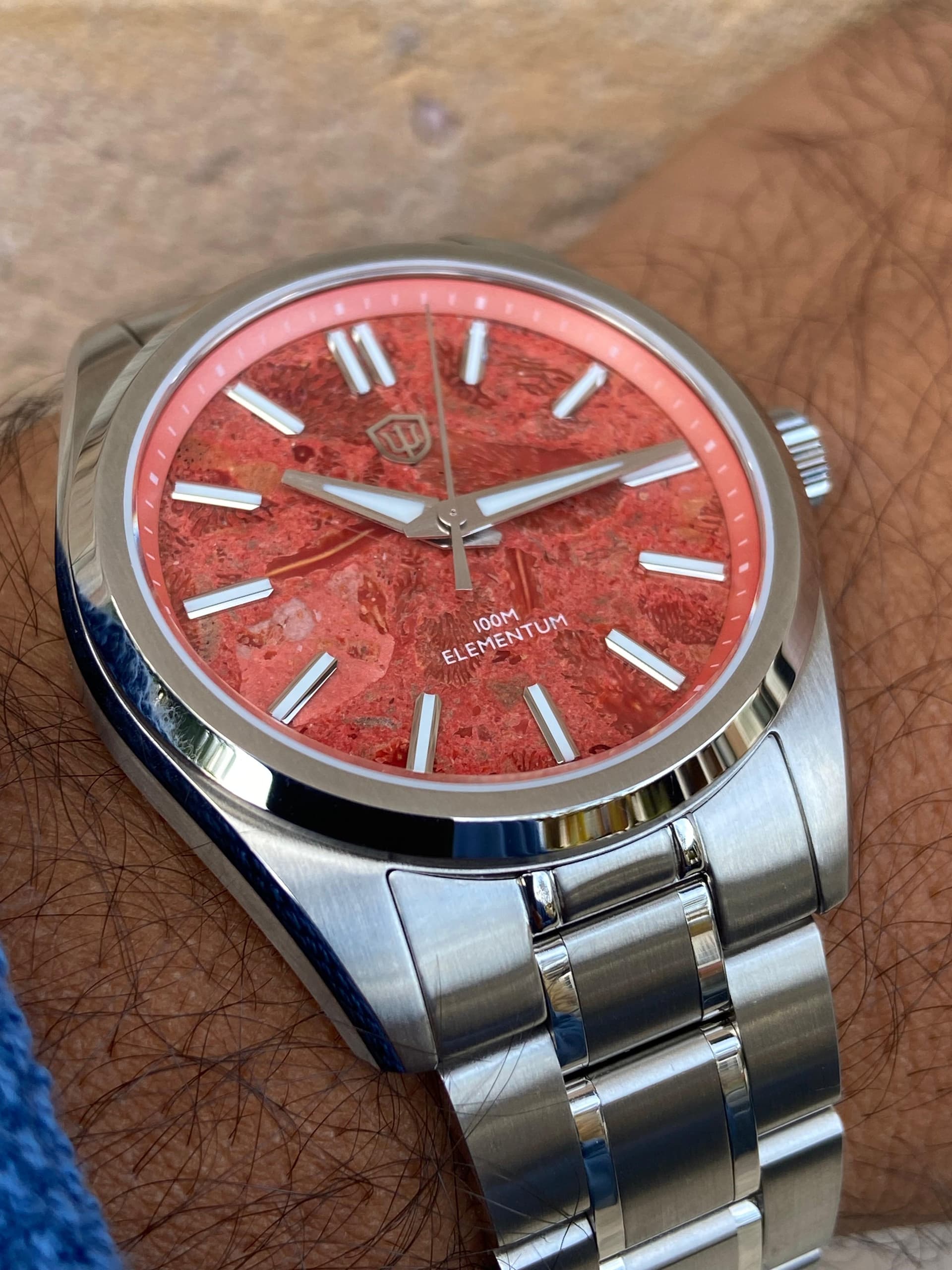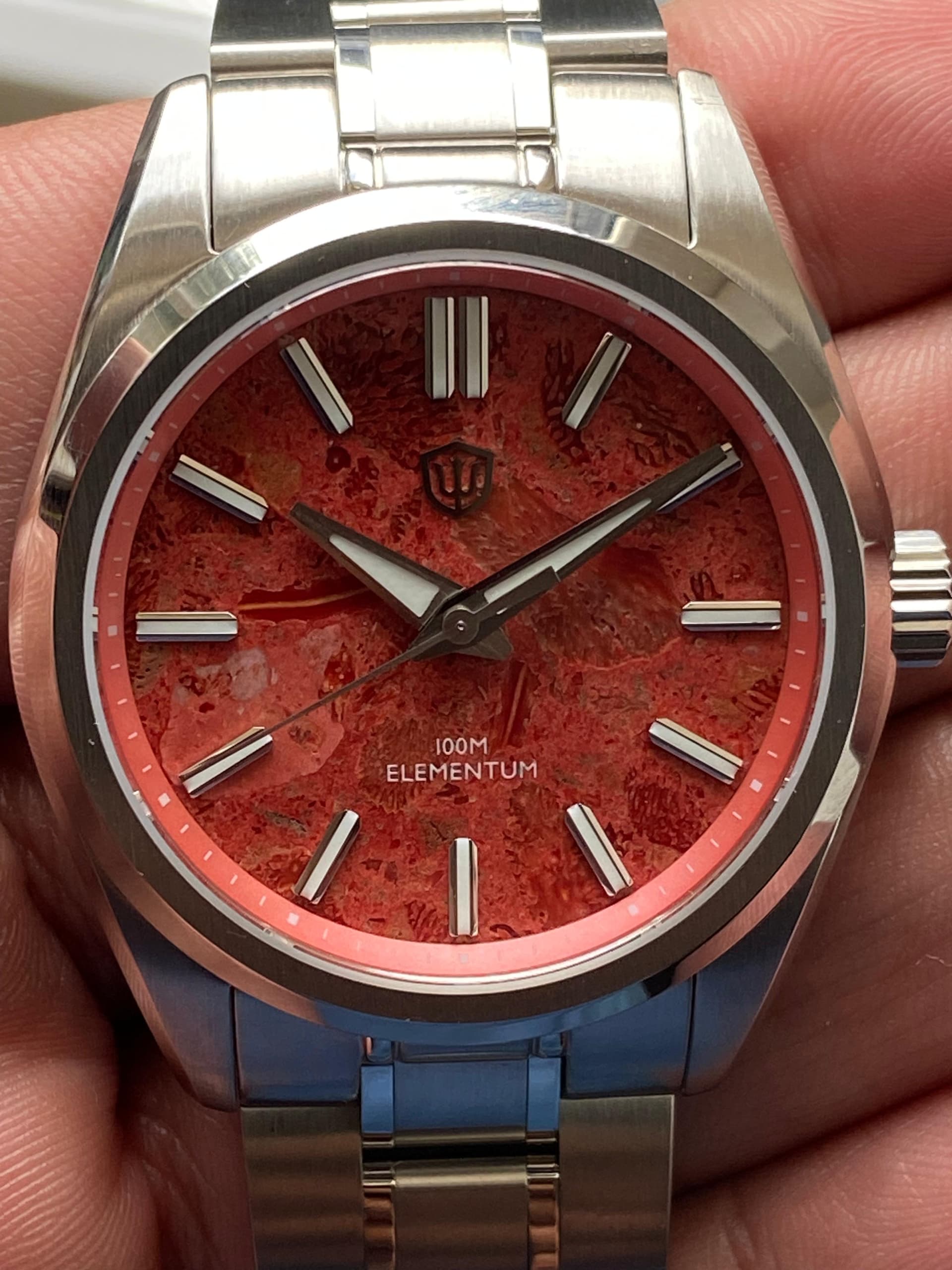 Vandaag is mijn tweede Watchdives horloge gearriveerd: de schitterende Nature Stone Dial in de uitvoering Coral ![]()