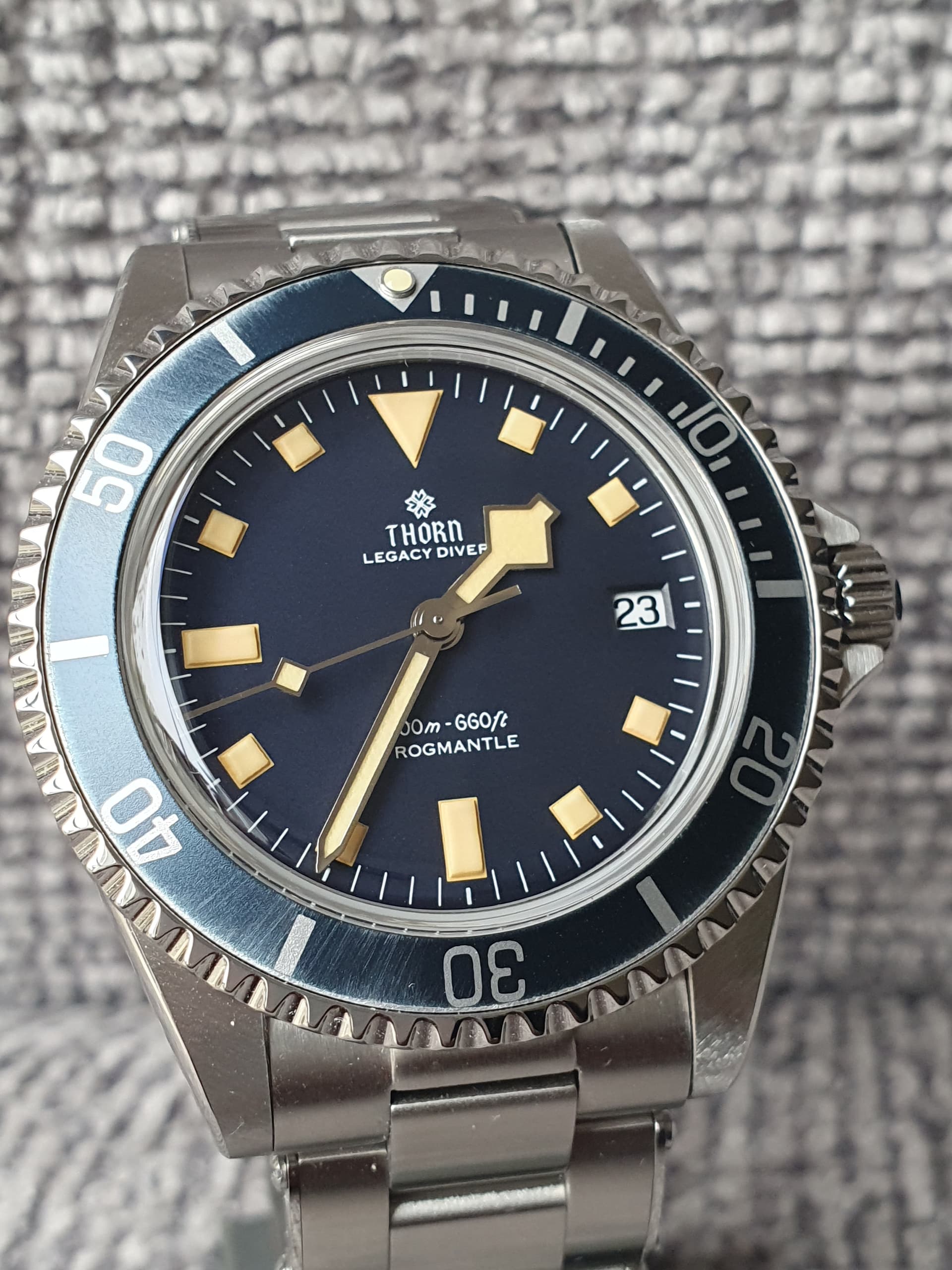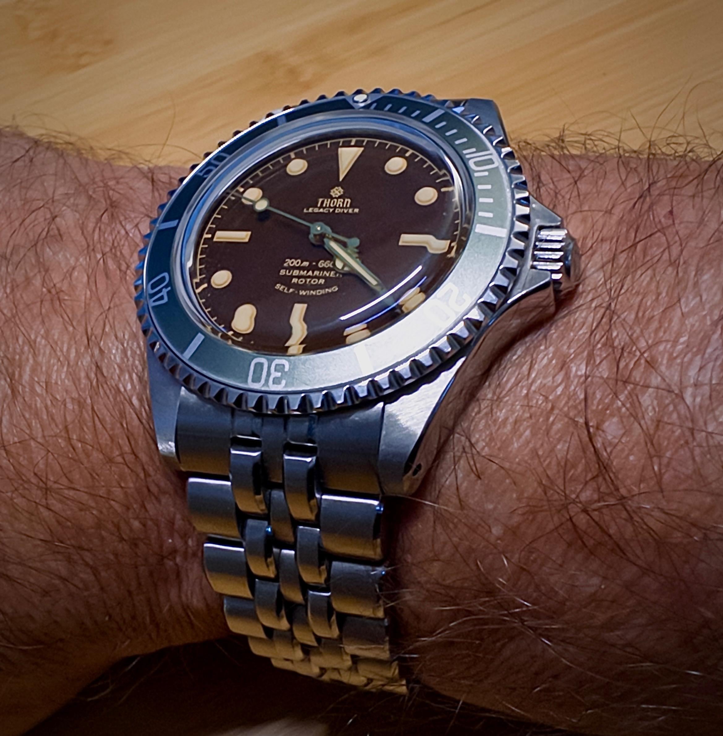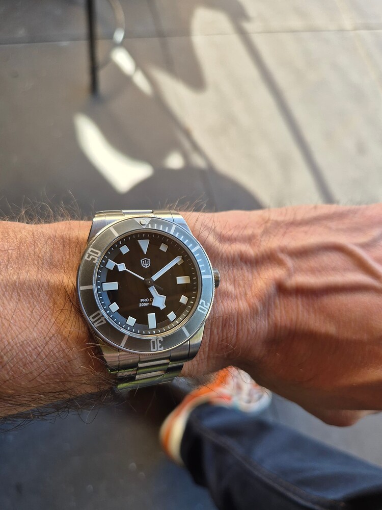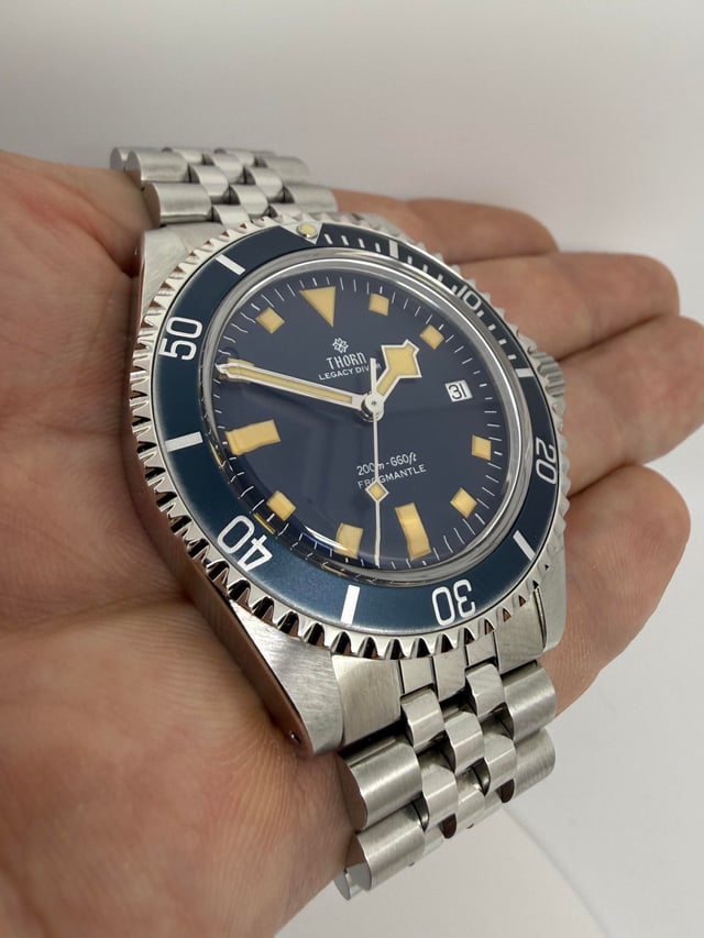 Na 4 dagen dragen om de pols vind ik de Thorn Legacy Diver een geslaagde horloge. PT5000 uurwerk is een betrouwbare hi-beat uurwerk, wat me opvalt is dat de datum verspringt rond 23:45 uur. İs dat erg? Niet voor mij. Bij mijn Cronos met PT5000 gebeurt dit op 00:00:19