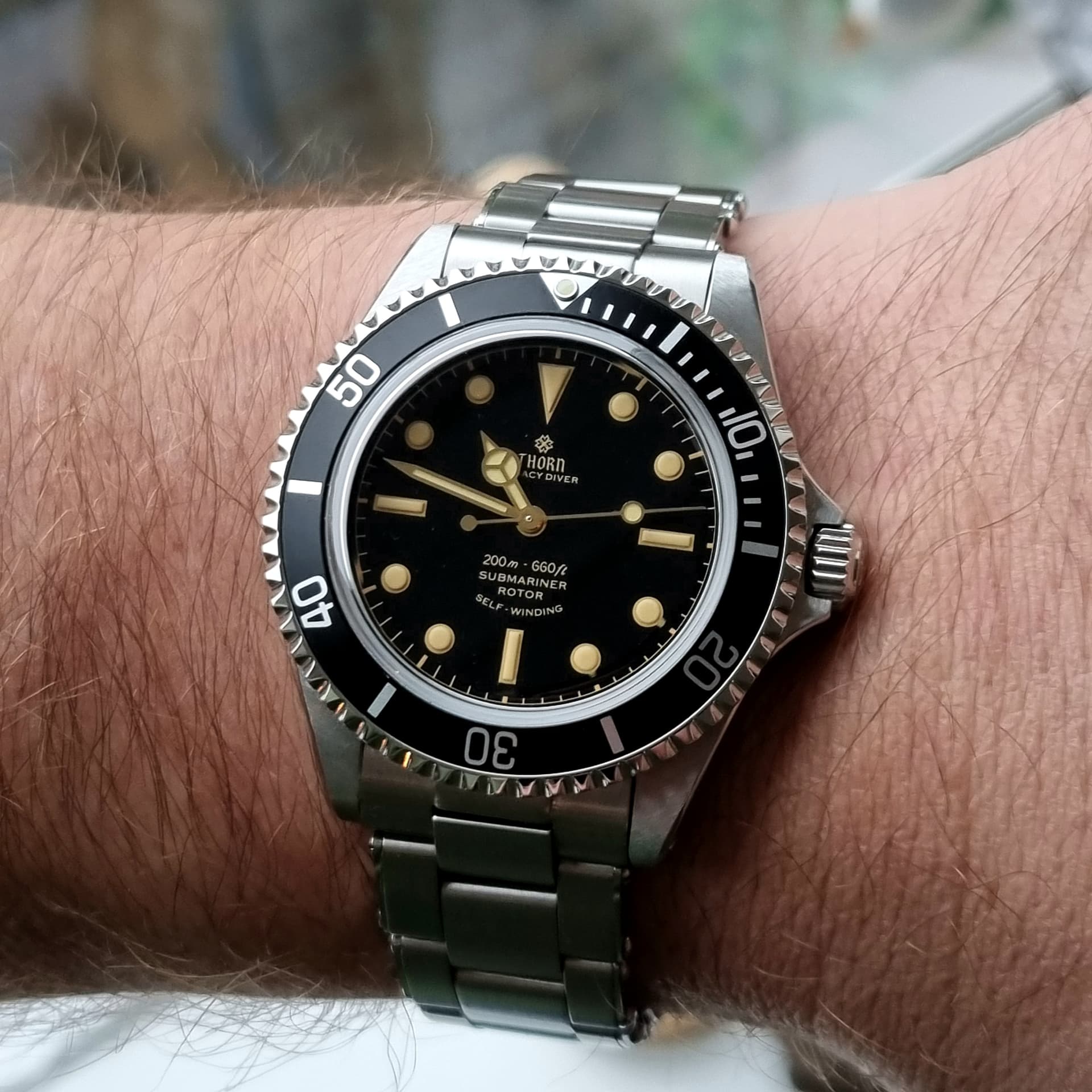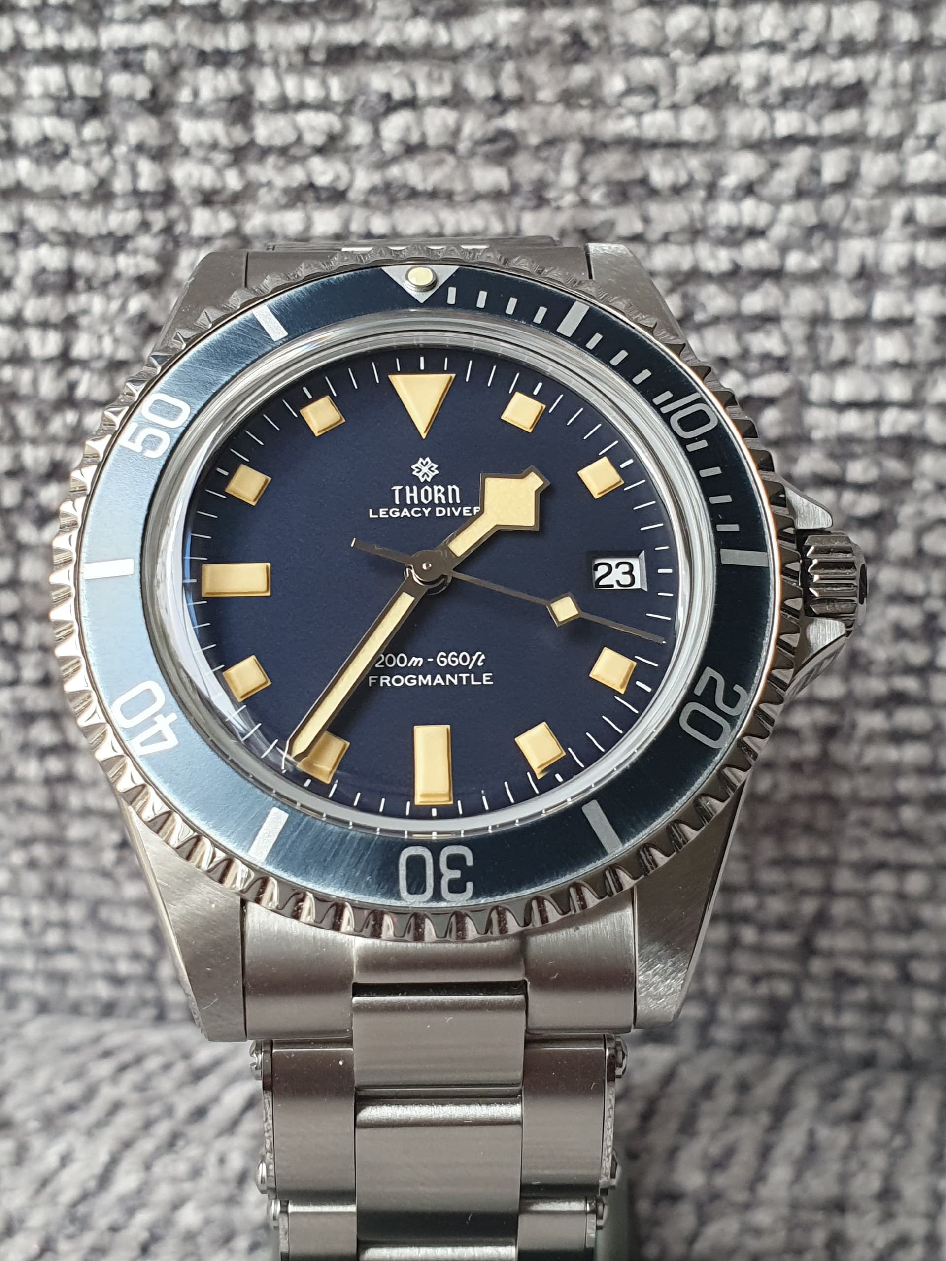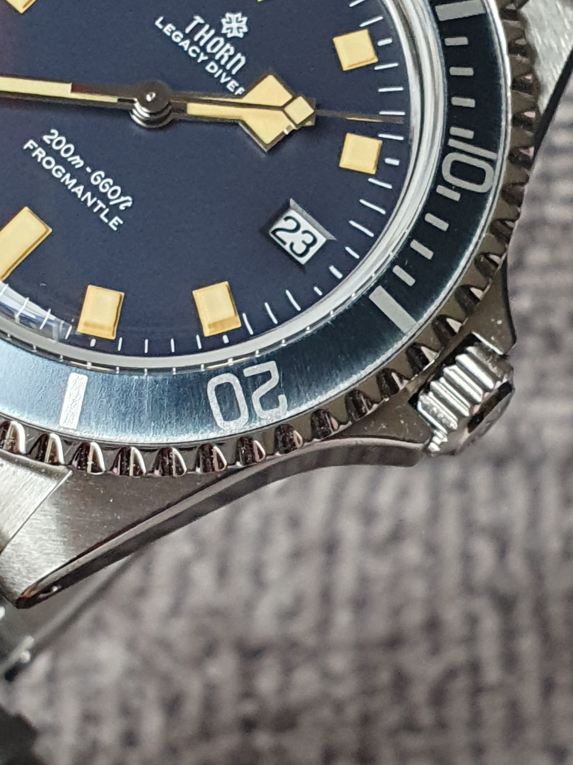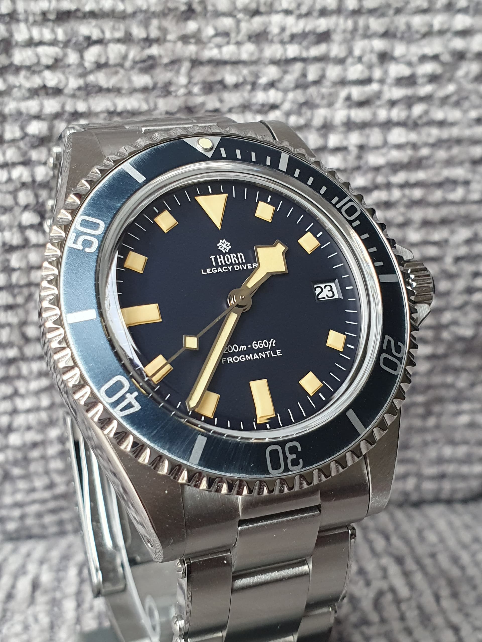 Na 4 dagen dragen om de pols vind ik de Thorn Legacy Diver een geslaagde horloge. PT5000 uurwerk is een betrouwbare hi-beat uurwerk, wat me opvalt is dat de datum verspringt rond 23:45 uur. İs dat erg? Niet voor mij. Bij mijn Cronos met PT5000 gebeurt dit op 00:00:19