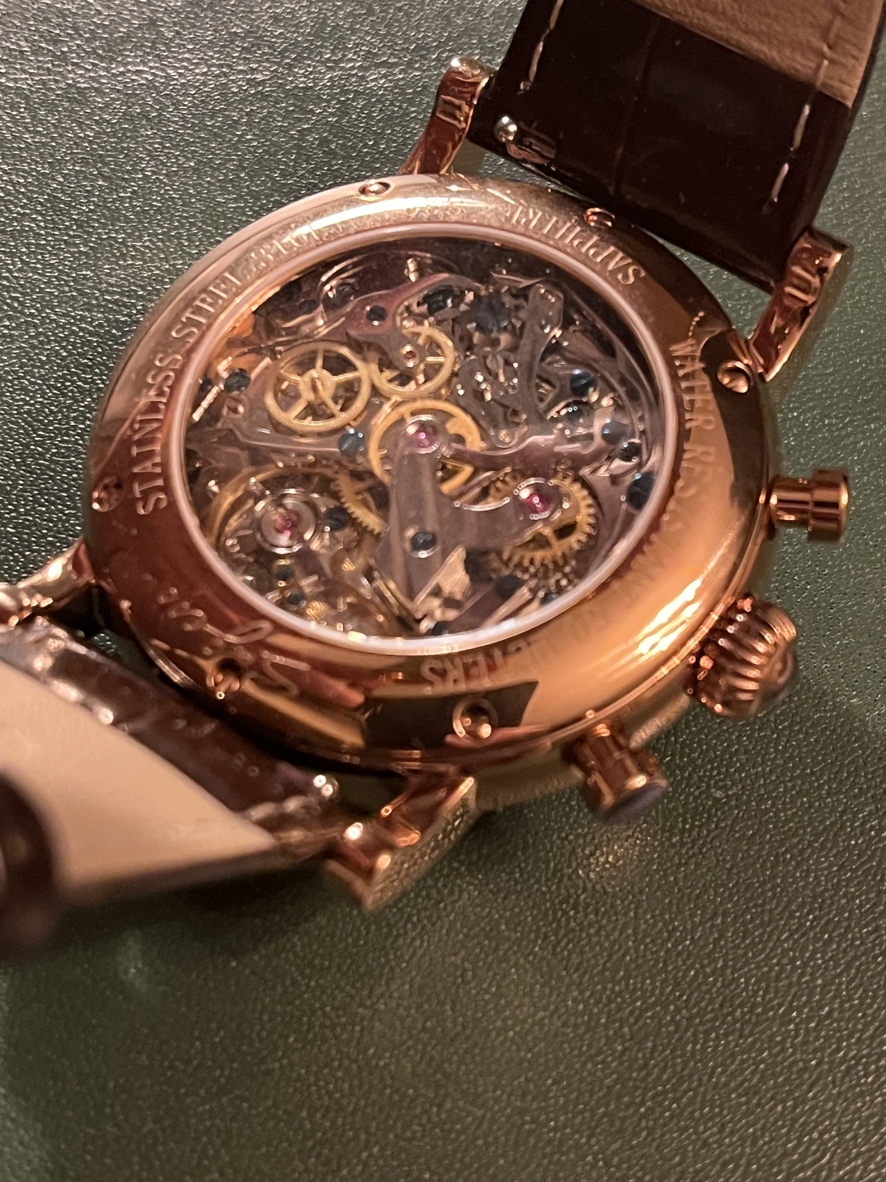 Sugess leuk horloge en vooral de achterkant, zo leuk dat je met leren band het beide kanten om je pols kan doen ![]()