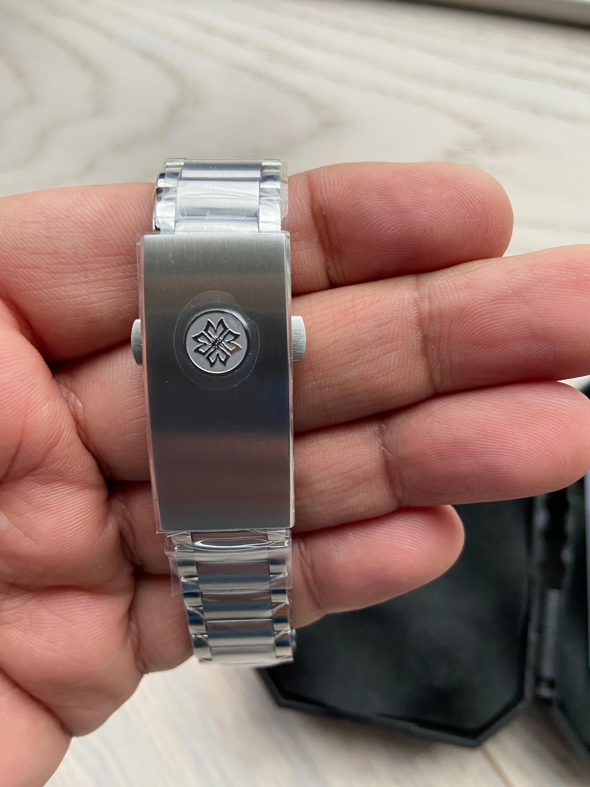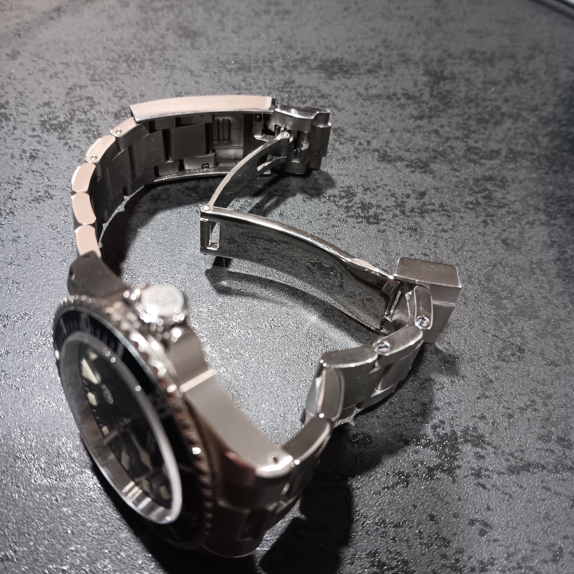 Vandaag een andere sluiting gezet op de Watchdives, besteld bij hen maar het paste niet, de schroefjes van de sluiting waren iets dikker en konden niet door de gaatjes van de links.