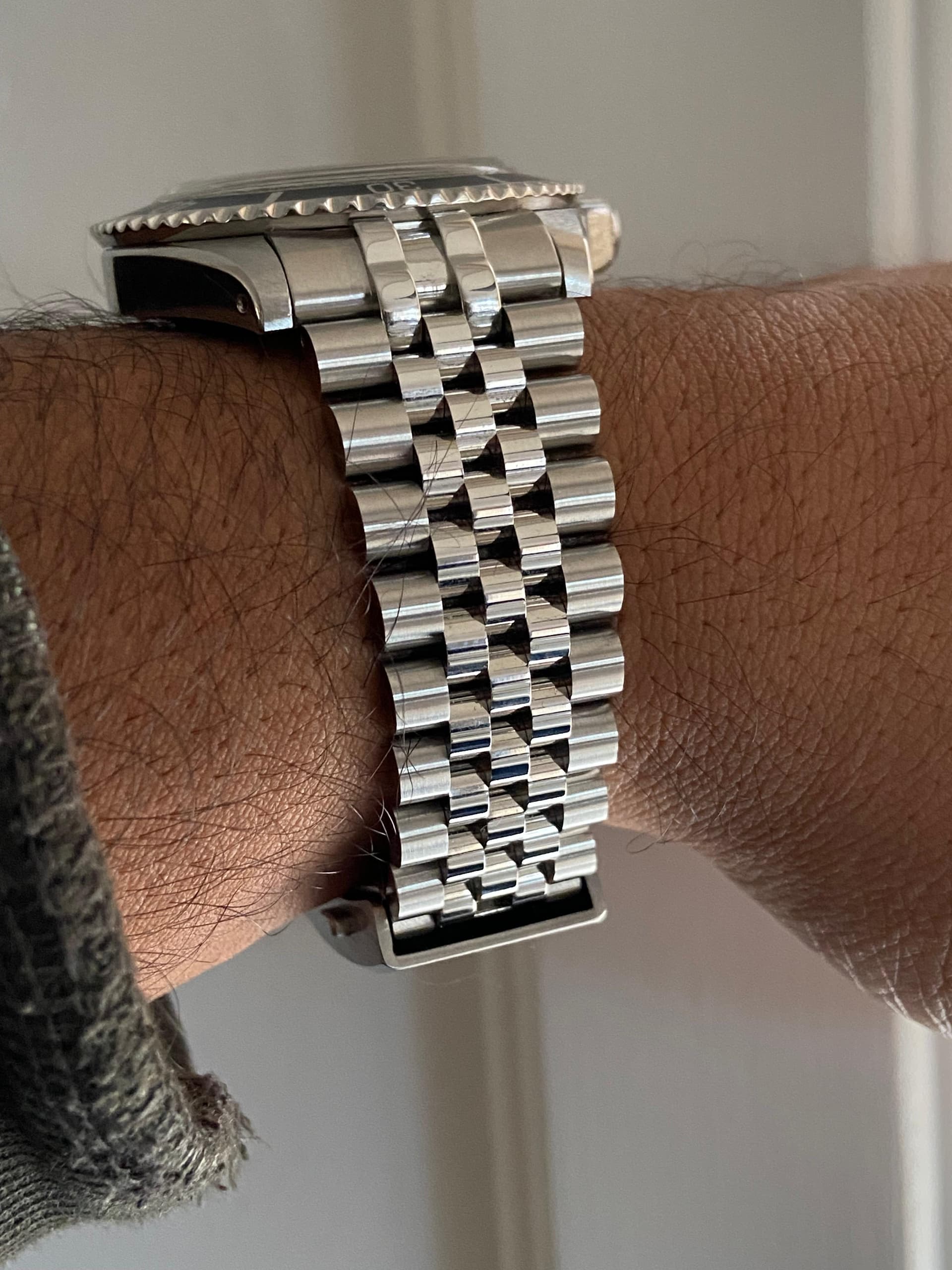 Die gaat ook dit jaar veel gedragen worden. Al een maand of 3(?) verder en nog steeds dagelijks om de pols. Meest comfortabele stalen band ooit ![]()