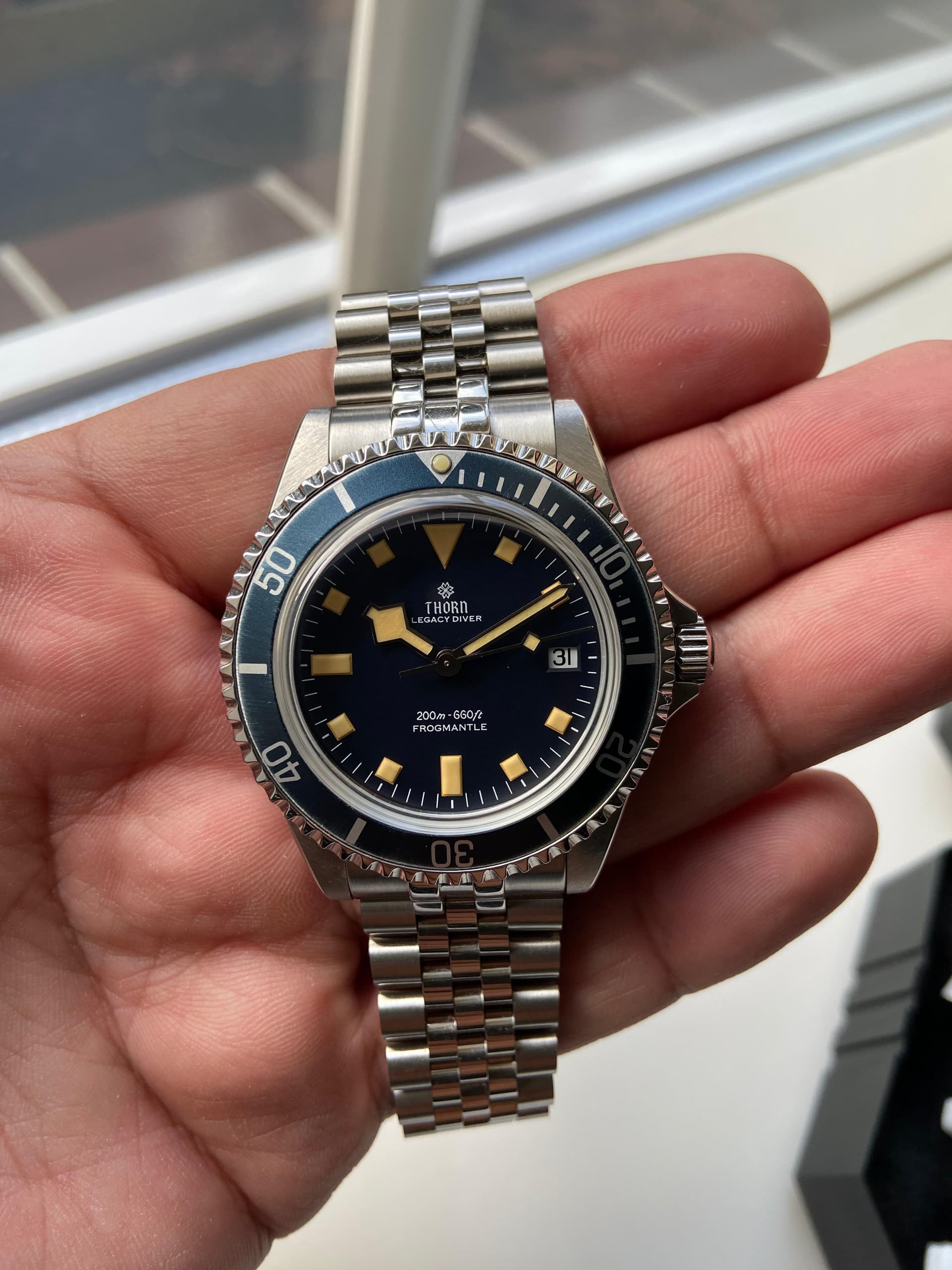 Nog steeds helemaal in de honeymoon met deze aanwinst. Het licht gebolde saffier, de perfecte kleur van de faux patina, de rode seconden wijzer, de geslepen randen van de kast. Het is een horloge volledig terug gebracht tot de essentie. Haal één element weg en het klopt niet meer.