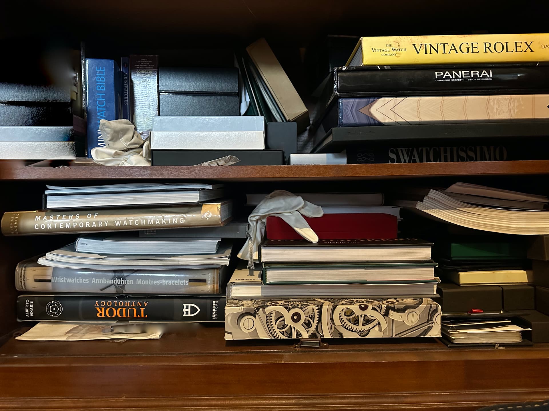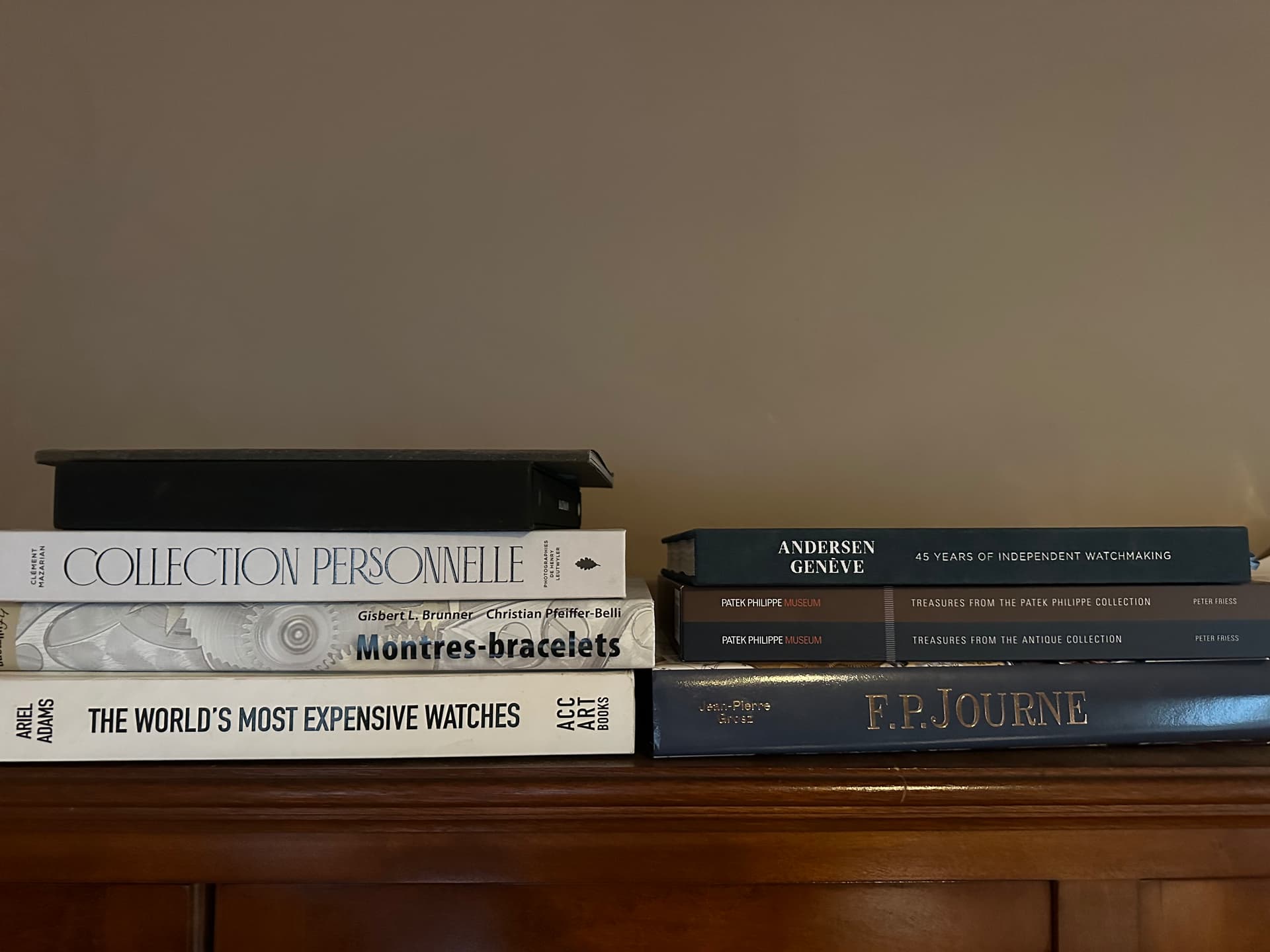 Als je ze hebt en ik ze gemist heb in de foto’s, niks gezegd. Maar koffietafel boeken en veredelde catalogi en collector’s guides in alle ere, de geschiedenis van de horologie en de technische details zijn super cool om er bij te hebben.