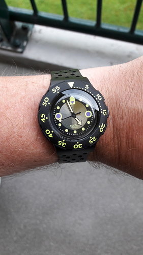 Meestal draag ik gewoon waar ik zin in heb, maar toen ik laatst een stukje terras opnieuw heb bestraat heb ik toch mijn Zeno afgedaan en een oude Casio om. Stenen, zand, gereedschap en een muurtje ernaast leek me toch iets teveel risico.